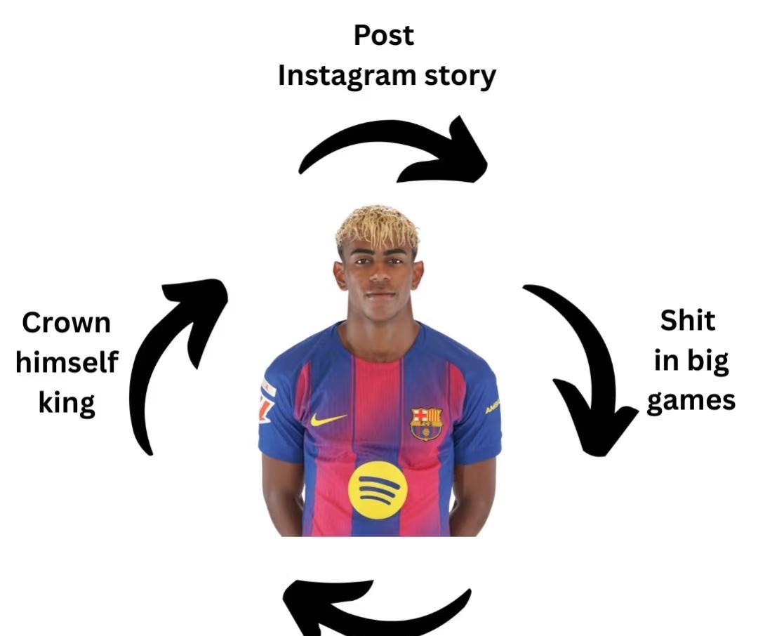 人狂自有天收,皇马2-1巴萨,亚马尔表现堪称灾难,到底谁偷窃、谁抱怨、谁搞小动作? 本场比赛,亚马尔几乎隐身,他22次丢球,0射正,要突破没突破,要传球没传球,要跑动没跑动,基本上被A费防死了,他的全部力气和精力仿佛都放在赛前的狂言上了! 客观的说,亚马尔是罕见的天才,批评死敌皇马也无可厚非,但球员的精力和作用不该放在嘴上,而应该放在比赛中,过度的场外表现最后会影响球员状态和形象! 从目前看,亚马尔的言论除了破坏他自己形象外,也在一定程度上激发了皇马球员的状态,让他们同仇敌忾,用表现战胜巴萨! 咱们回头想想,亚马尔还是太年少轻狂,但人狂自有天收,他难道搞不清到底谁偷窃、谁抱怨、谁搞小动作?#西甲皇马#