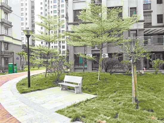 环境整治后,南湖湾小区原本杂乱的绿化环境变得整洁舒适。钟珍玲摄