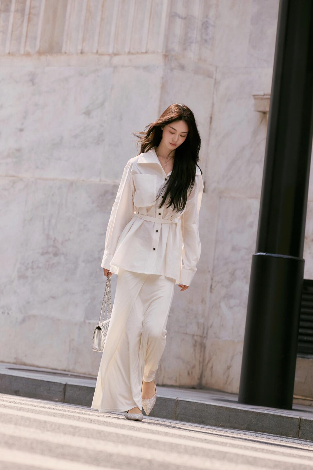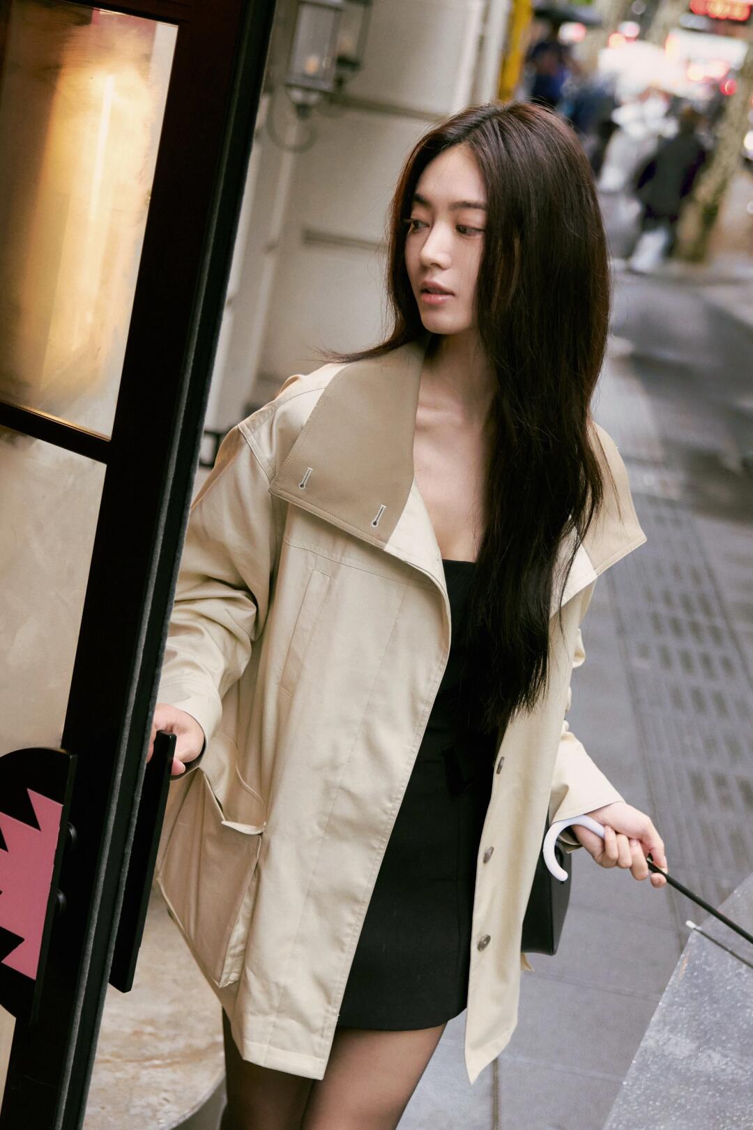 不是那种高饱和色调的浪漫喜剧,也不是快节奏的冒险大片,而是那种镜头缓慢推进着的,安静的、克制的、带着些迟疑与顿挫的生活片段。 她期待一个风和日丽的下午 把风衣系好 任衣角摆动,影子拉长 风衣像盔甲,但不是冷冰冰的那种 它的硬度中携带着温柔 直到她等到一阵柔软的风 风衣贴着她的手腕,给了她一个久违的拥抱。 ootd太平鸟女装太平鸟人生风衣风衣穿搭