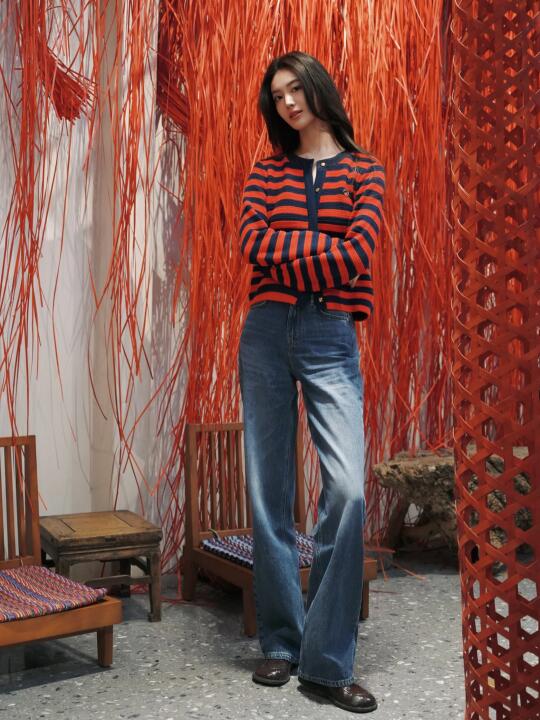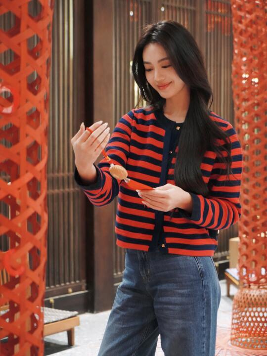 北京的新年有一种平凡却动人的温情 白天的街市是热闹的 京味年,在红墙黄瓦与袅袅炊烟之间 漫步在青砖铺就的街巷 红墙黄瓦间升腾的烟火气 流淌着温暖日常 春节将近 穿搭也多了古城的年味 Lee蛇年新春系列以“灵蛇添彩”为创意主轴 巧妙融入寓意 红与藏青色相间的条纹毛衣开衫 点缀有新春氛围的金色纽扣 搭配浅蓝色水洗牛仔 用红气针织与时髦丹宁相结合的形式来表达新春红气氛围 恰如其分