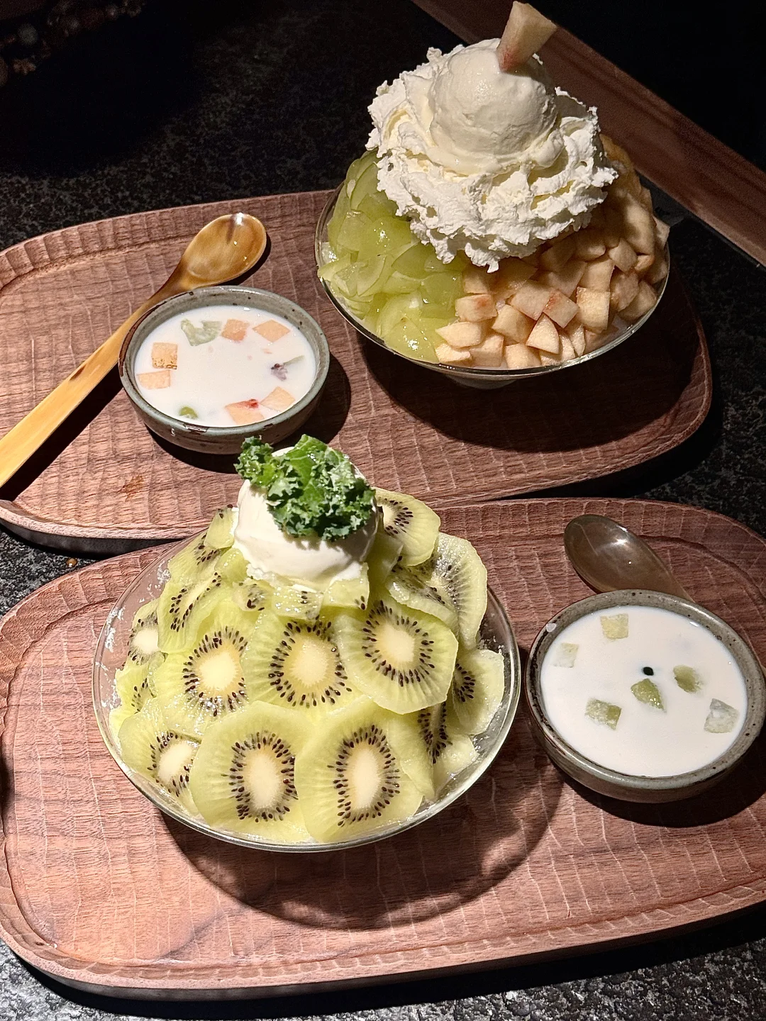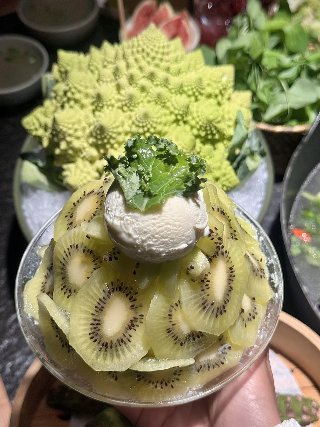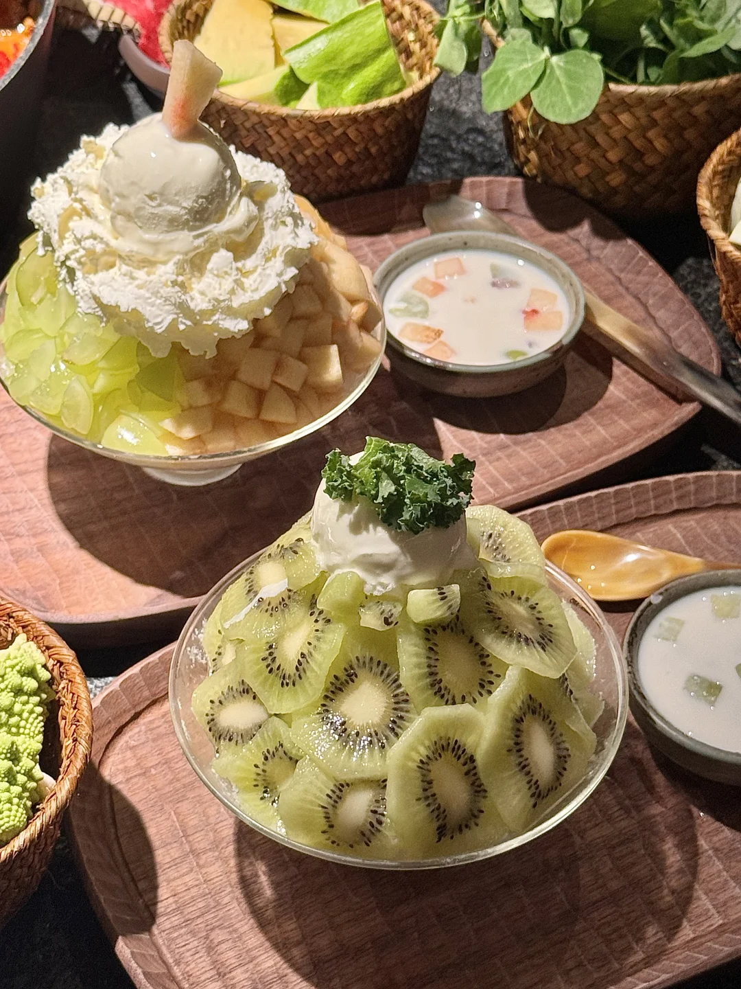 漂亮小甜甜直接拿捏我了!😅 无花果芭乐菠萝蜜、猕猴桃🥝冰淇淋刨冰真的超大份巨巨巨好吃!!🤤 居然还有麦青红豆糕!谁懂这一口的含金量🤤宝塔菜也是第一次吃的…很惊艳的口感!