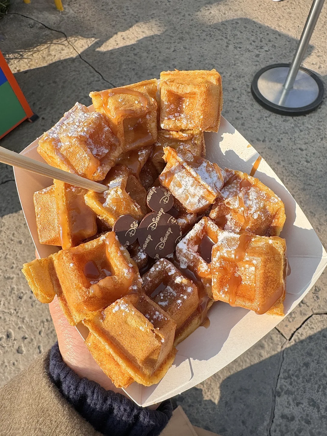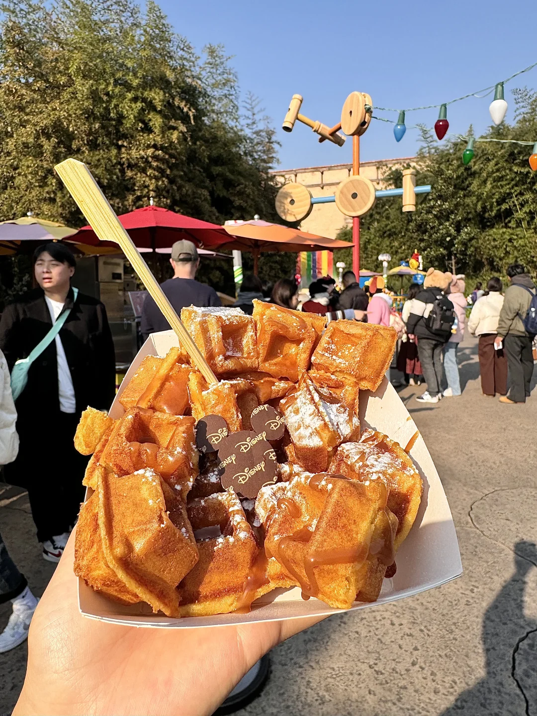 新出的岩盐焦糖华夫饼!40r好好吃啊🤤 排队人超级多的!就在玩具总动员、甩驴出口那里…