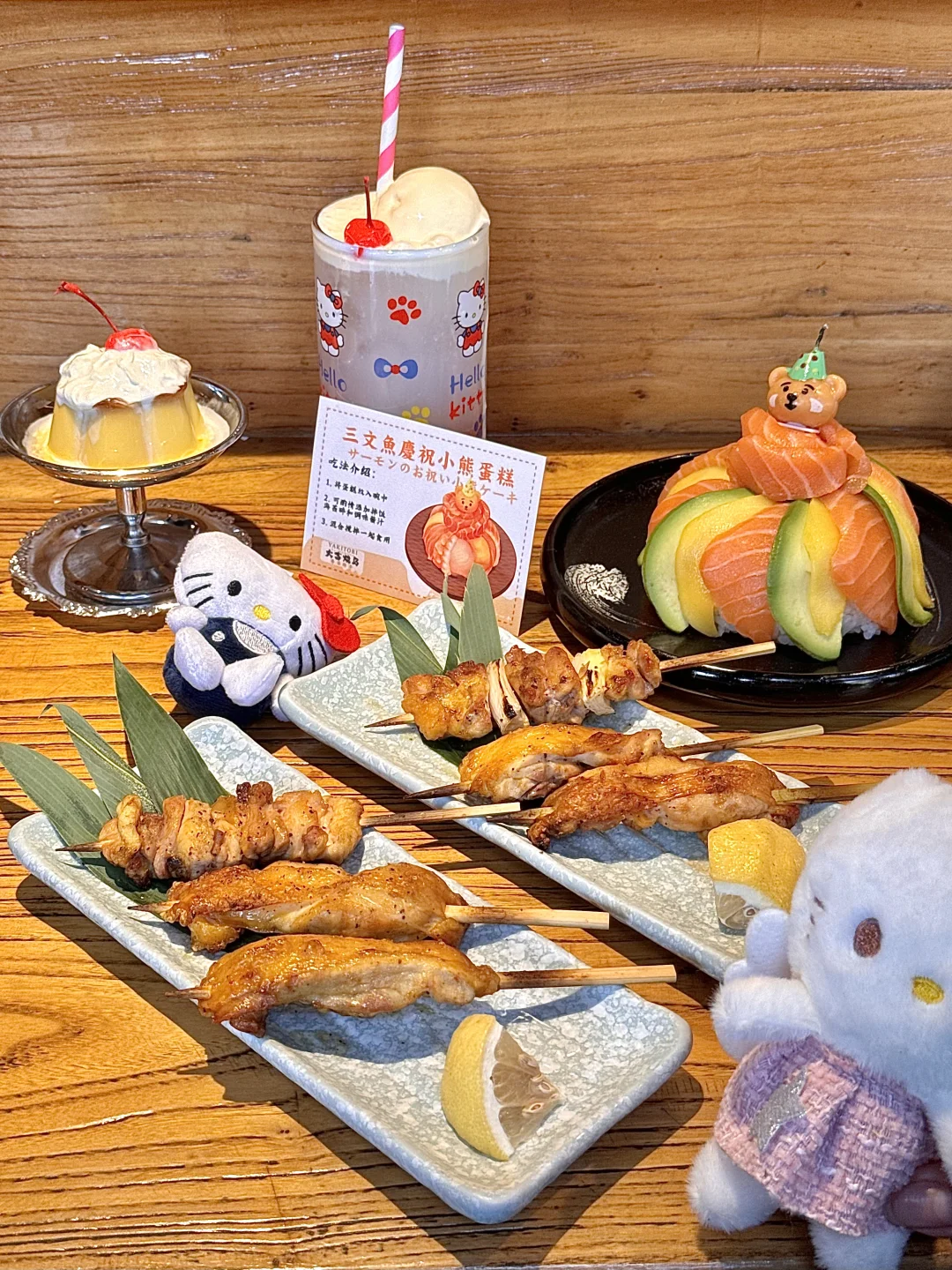 超适合好朋友一起的日料小食堂!😍 hello Kitty咖喱猪排饭🍛饭也太萌了吧…根本舍不得吃啊啊!! 还有Kitty气泡水🫧草莓🍓三文鱼蛋糕…… 尊嘟可爱鼠了… 他家烧鸟也太便宜了吧!只要几块一串量好大!😍 适合朋友N刷的日料小食堂🥢