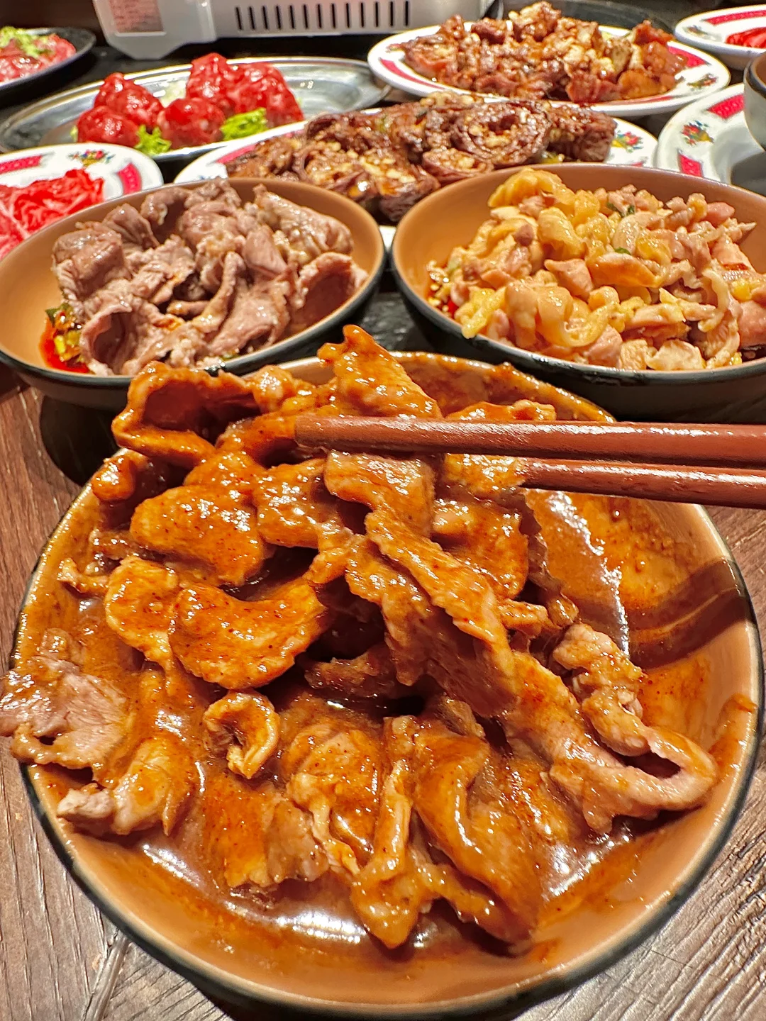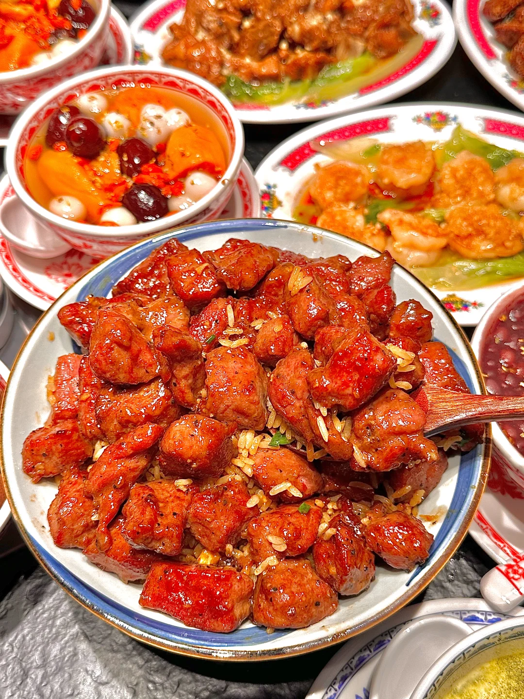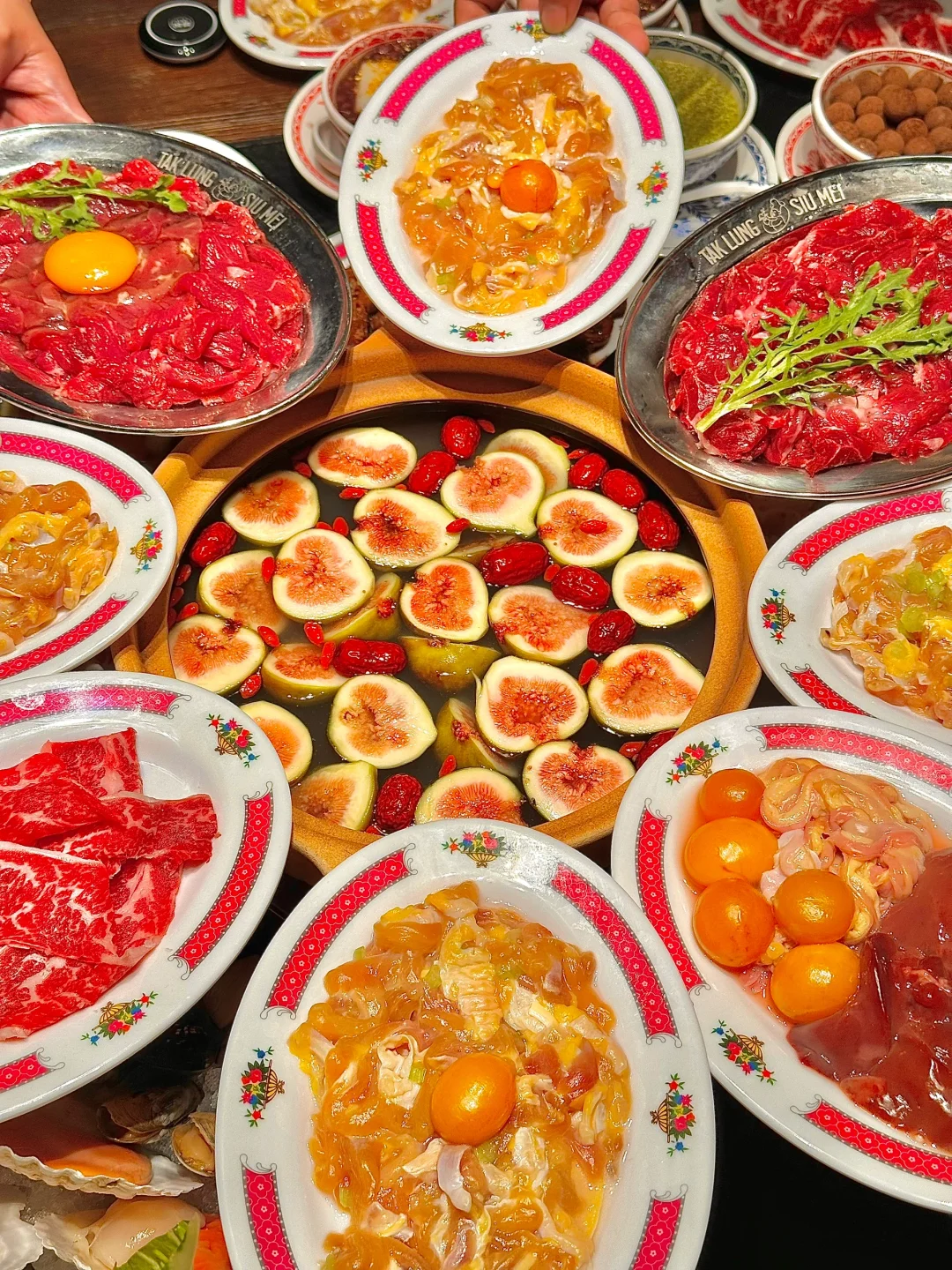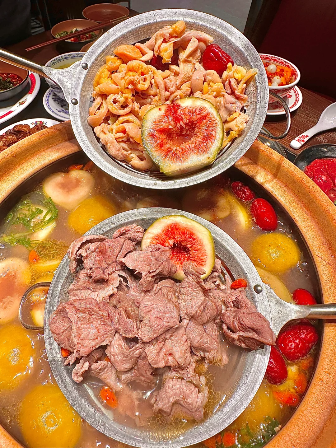 中山公园来福士新开的!! 抹茶🍵奶冻吼吼吃啊!无花果锅底好鲜🤤还有十多种配菜… 各种蒸菜、涮鲜牛肉、风生水起捞鸡…… 还有牛肉炒饭!牛肉多到溢出来😅 不夸张…预计又要大排队的一家……🔥