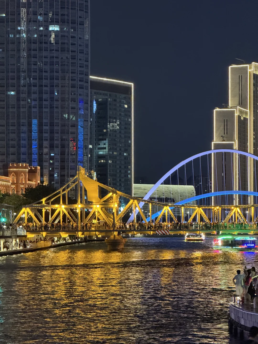 在海河岸边,时间是可以被“浪费”的。看老人在树下下棋,听孩童追着泡泡欢笑,看恋人牵手走过百年老桥……这里的每一缕波光,每一声船鸣,都在告诉你:生活的治愈,就藏在海河的一涨一落、一昼一夜里~