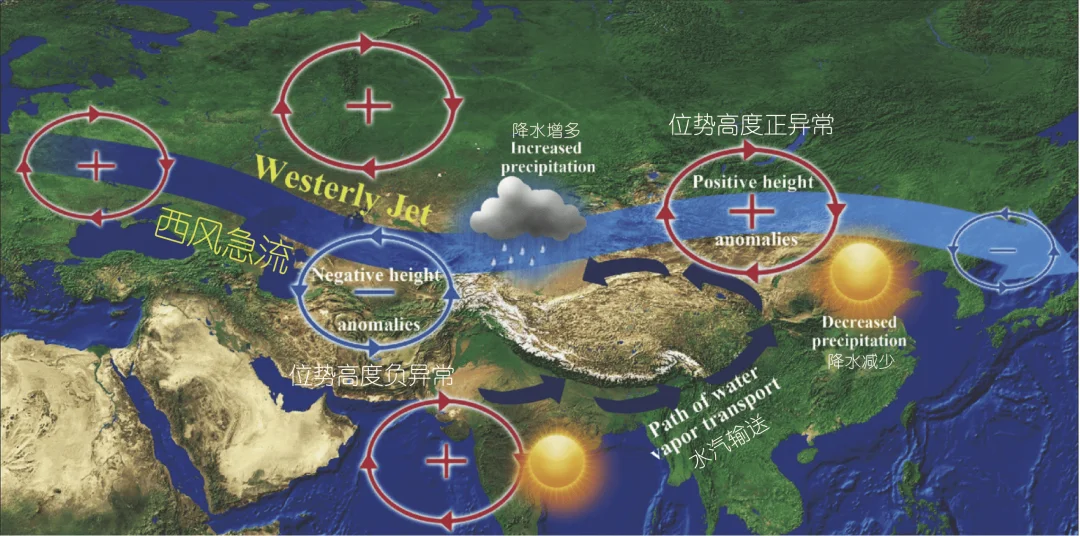🇨🇳青藏高原对亚洲气候的影响主要包括地形导致的热力和动力影响两个方面。今天和大家分享其中之一:[一R]对西风环流的动力影响: 屏障作用, 波动抑制作用, 急流分支作用和会合作用. 叶笃正等首先提出高原大地形引起的动力作用和热力作用对于大气环流的重要性是同等重要的, 大气环流是一个青藏高原地形动力扰动和海陆分布热力原因相互作用形成的整体. 夏季高原上基本是上升运动, 冬季是下沉运动, 夏季可以肯定高原是一个热源, 冬季是一冷源。