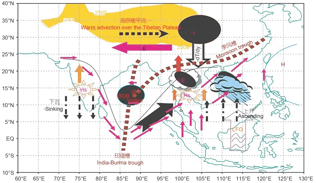 [三R]同时高原与南亚地区海陆气相互作用, 形成孟加拉湾春季暖池, 锚定了亚洲夏季风最早在孟加拉湾东部爆发。