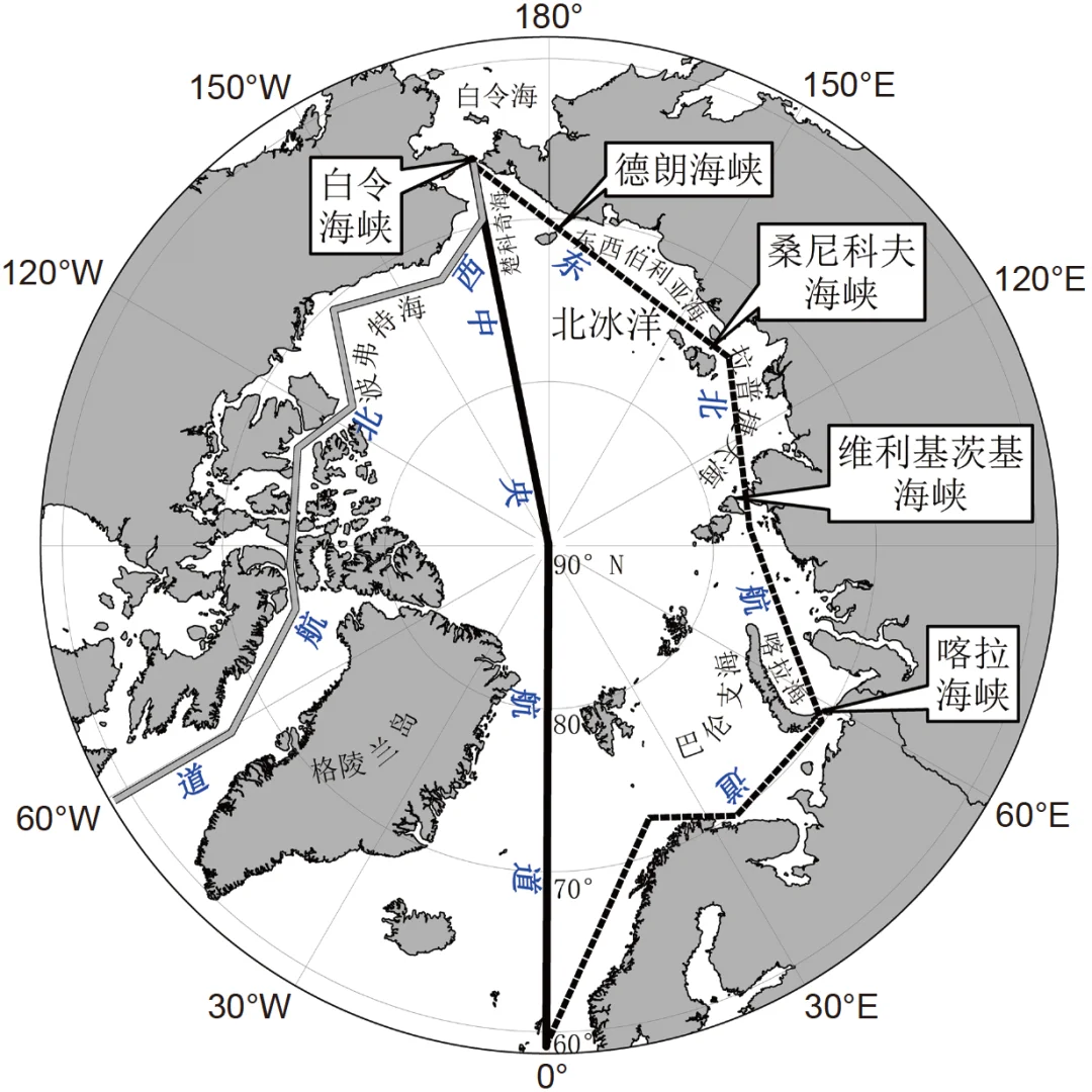 📻综上,基于“冰上丝绸之路”的内涵及“冰上丝绸之路”与“一带一路”的关系,本文的研究区域为37个“冰上丝绸之路”沿线国家(图1),包括中国、日本、韩国和蒙古4个东亚国家,美国、加拿大、俄罗斯等8个北极国家,英国、德国、法国等5个大西洋东北部边缘海沿岸国家,以及意大利、西班牙、奥地利等20个东北航线拓展线国家。