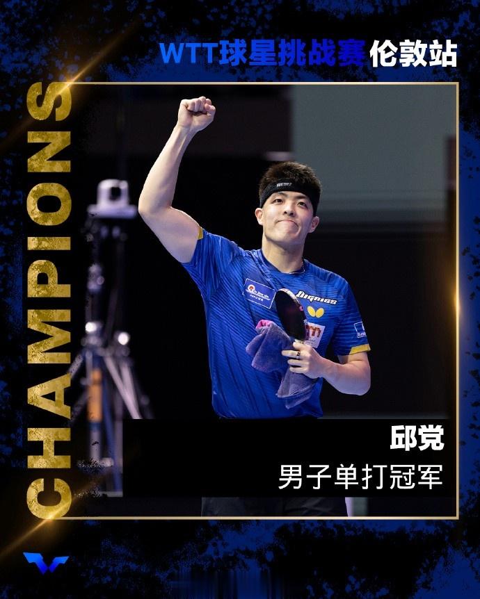 男单决赛,邱党4-2[13-11,12-10,14-12,9-11,7-11,12-10]张本智和夺得冠军。