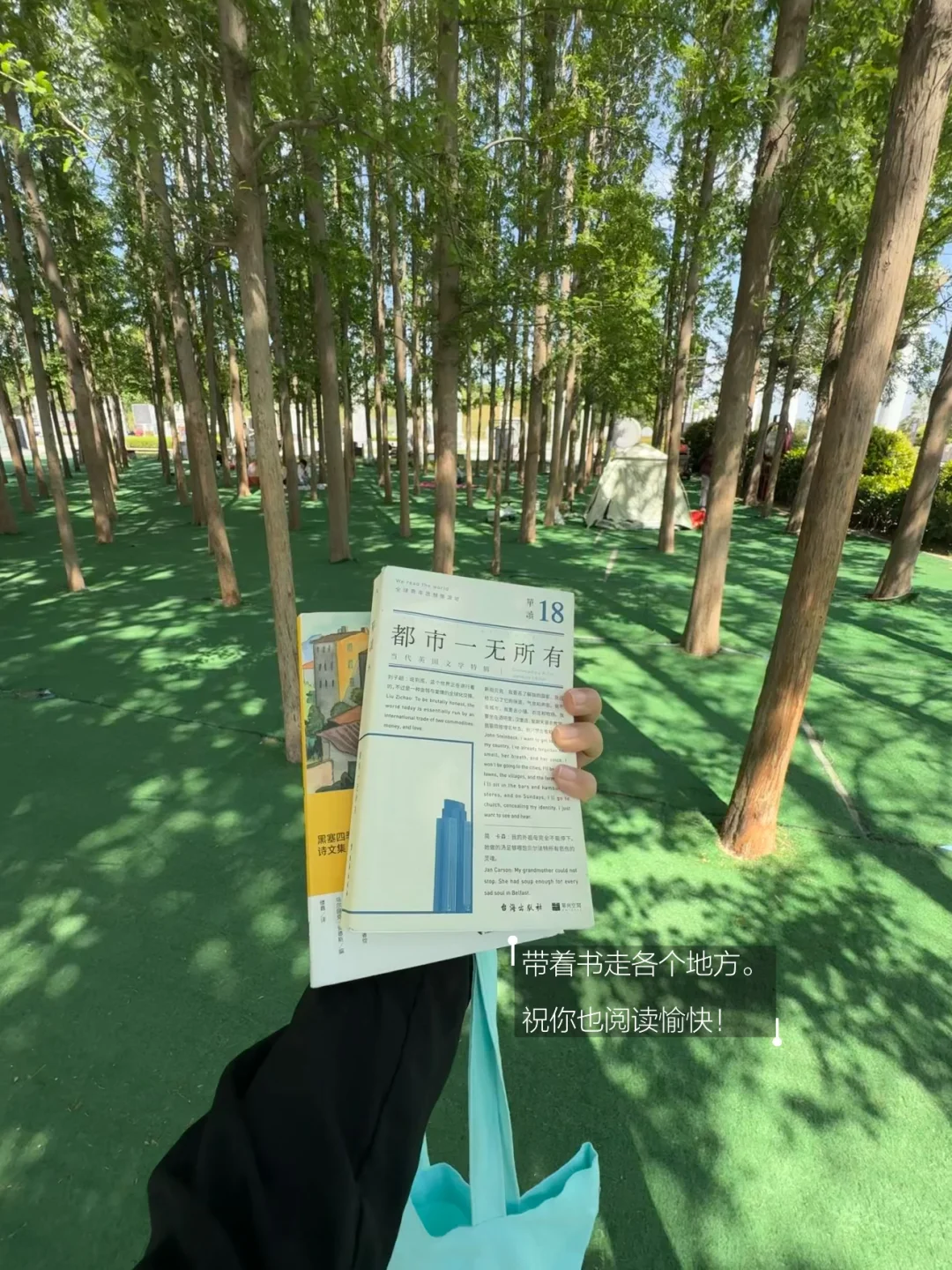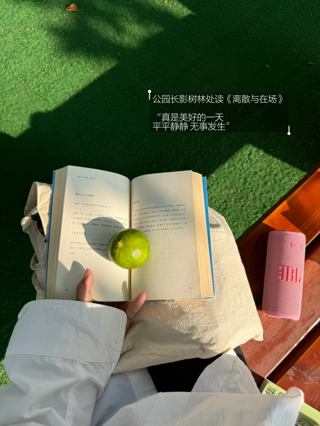 公园的长椅上 夜晚的灯下 很多很多空白的间隙被书籍填满