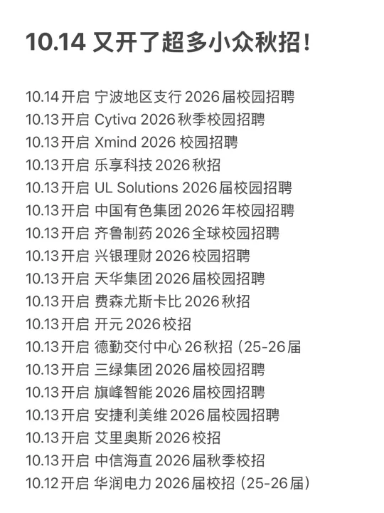 10.14 又开了超多小众秋招!