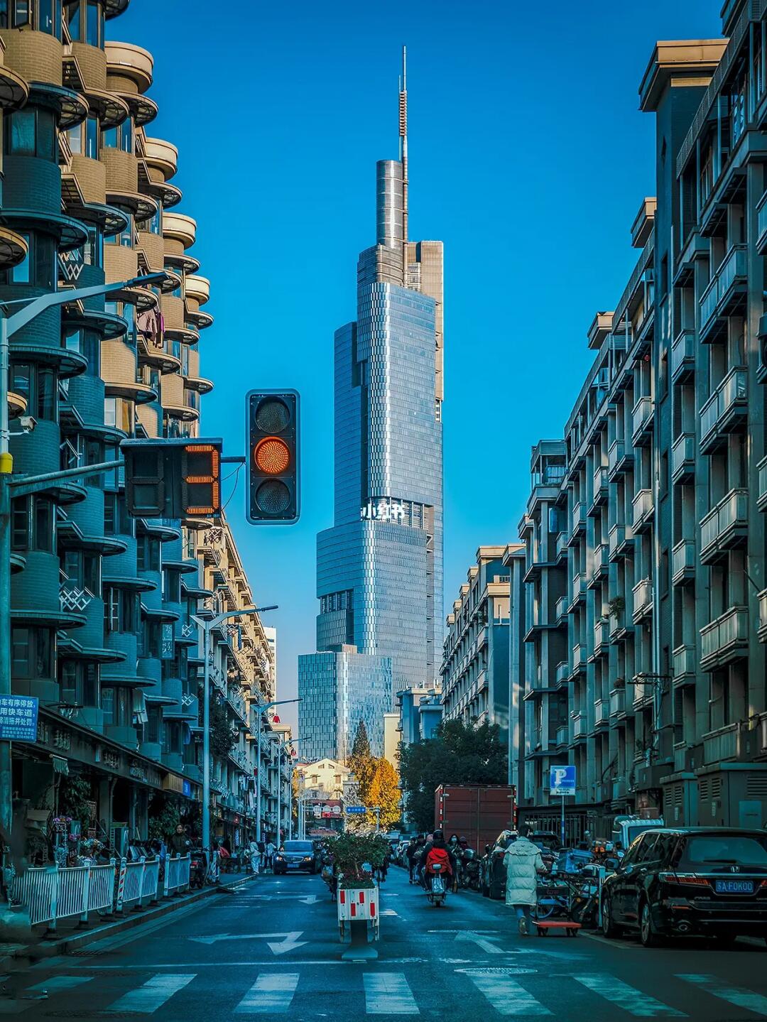1.宁海中学北门:紫峰大厦超美机位,两边设计独特的建筑延伸向前,不能错过的大片机位