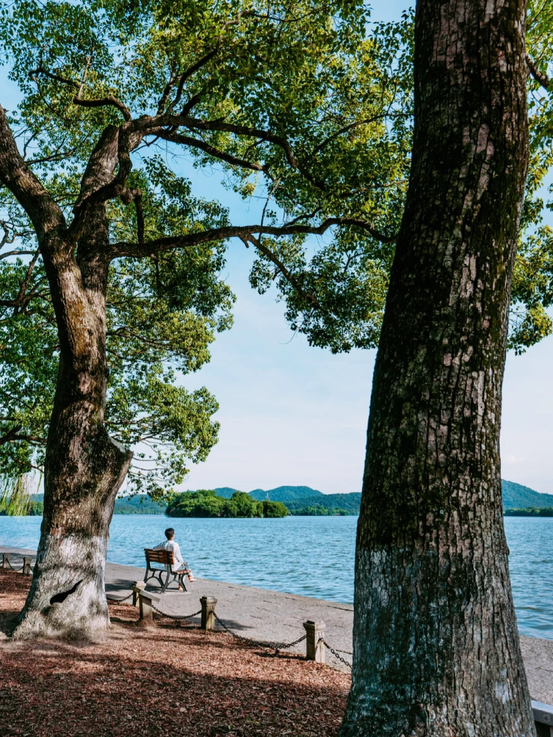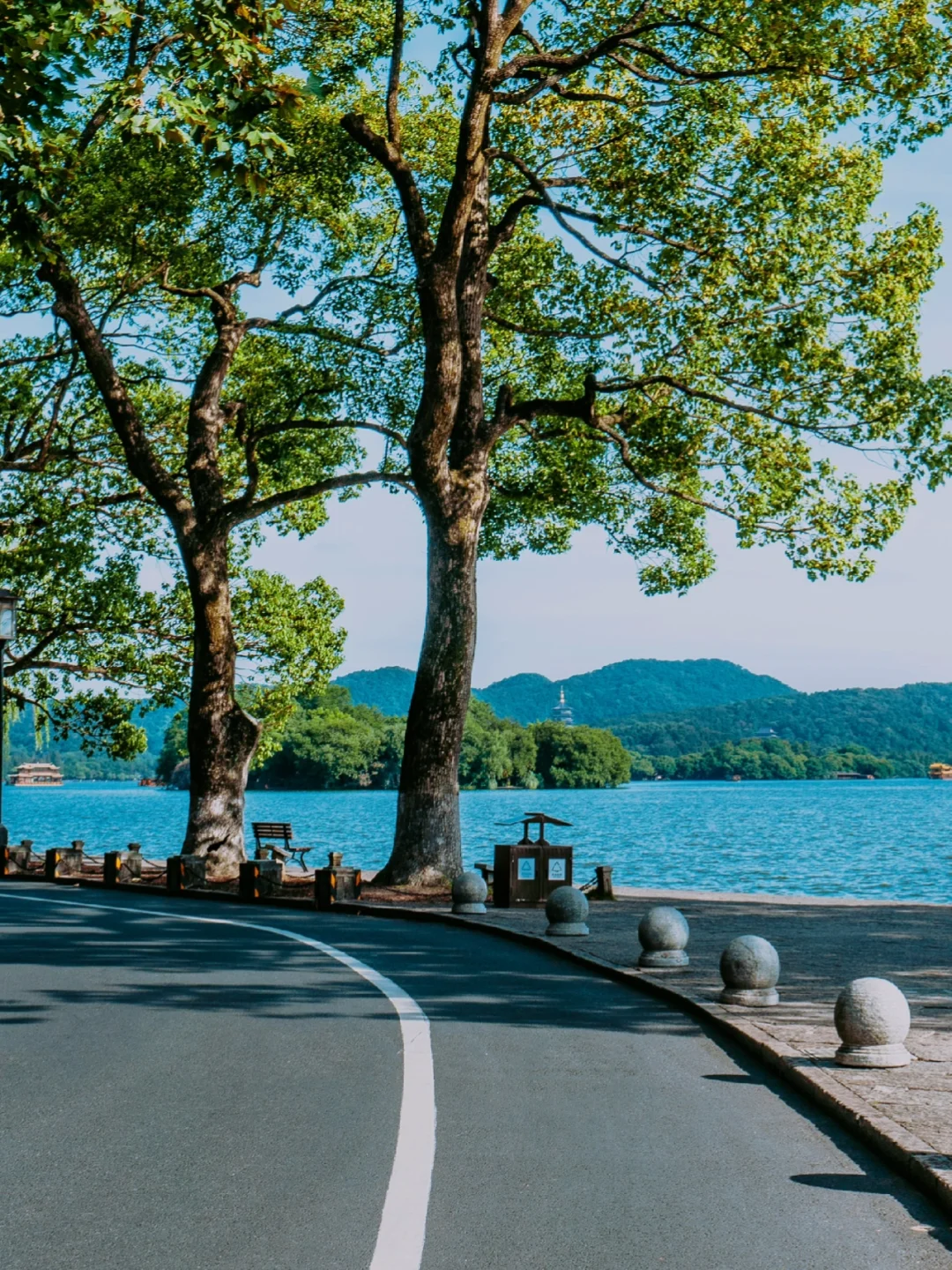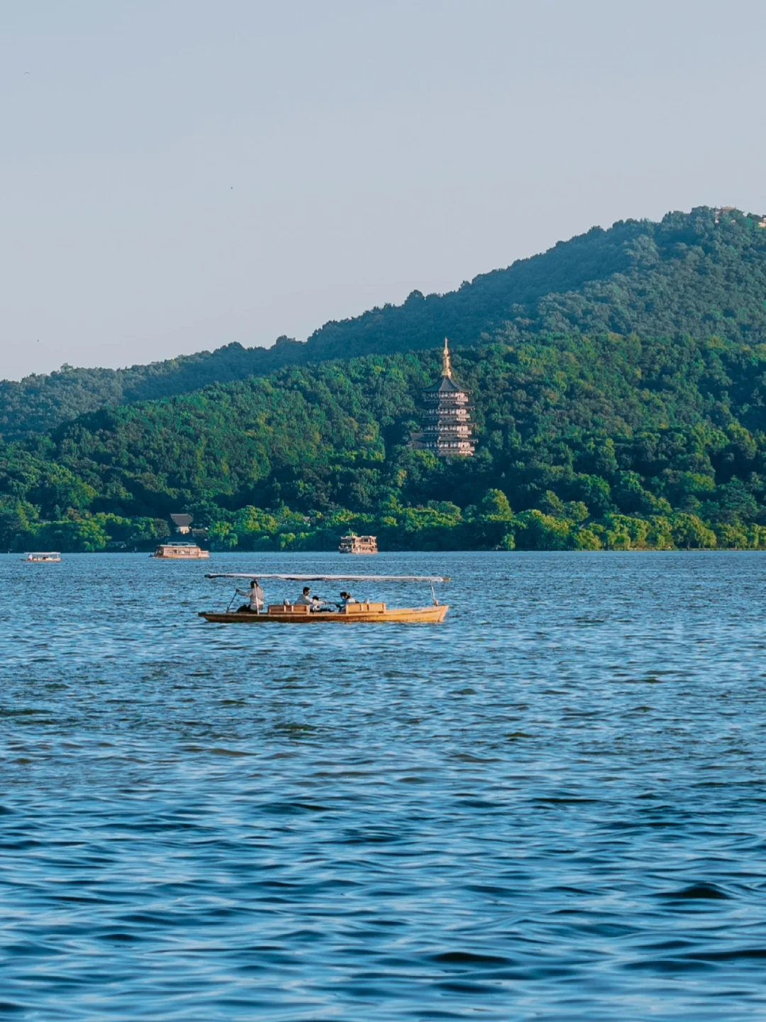 这是我第一次来杭州,首选还是来到了西湖,最近的杭州也太热了叭,高温天气,不过天气再热也阻挡不了去感受一下西湖的美景。 - 在这里不仅可以欣赏西湖的美景,下午5点左右还可以看超级美的日落🌄,这里还是杭州最浪漫的1314♥️路公交车的经过地,情侣真的特别适合感受一下这一趟公交,到西冷桥公交车站下,就可以看到这个超美的拐角了,然后坐在湖边长椅上欣赏西湖的日落 - 真的太绝了,没有骗我 来杭州如果只去一个地方 那一定要去西湖的孤山路 🧭导航:杭州西湖孤山路(西冷公交车站) 🎫门票:免费