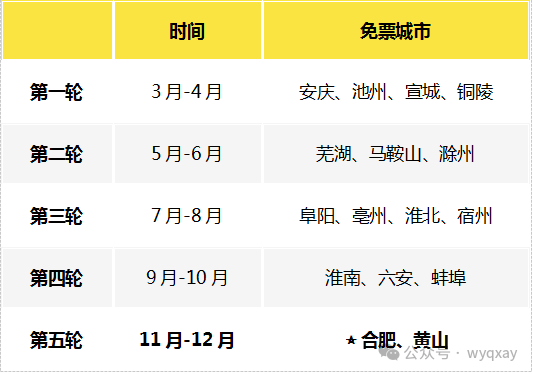 1.本轮安徽市民免票活动购票通道于11月1日前更新。