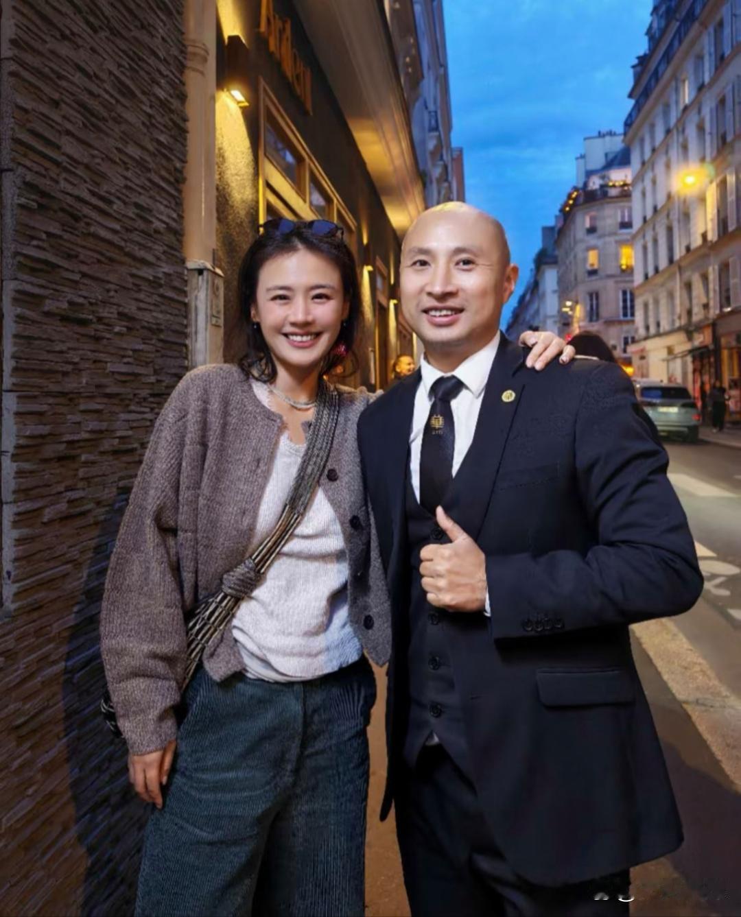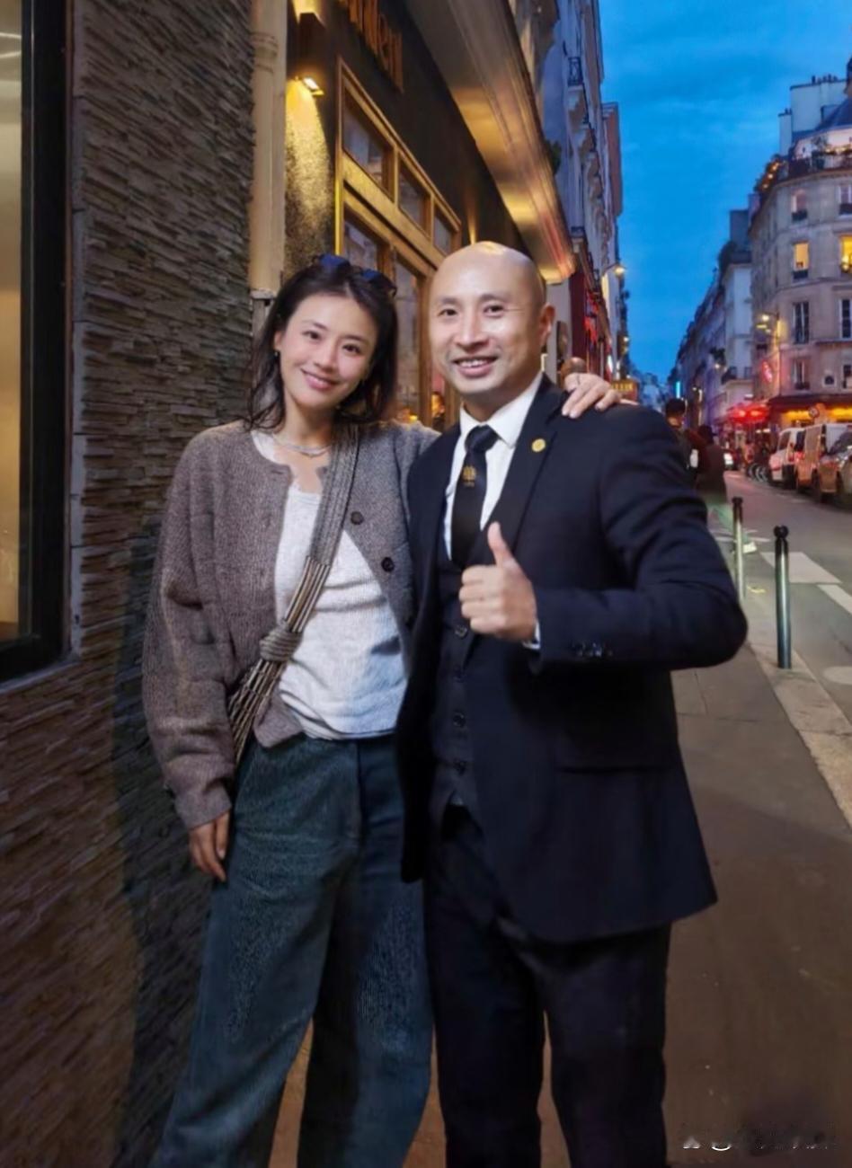 37岁马思纯在法国巴黎的夜晚逛街,她的打扮好洋气,身材瘦了不少,笑起来好漂亮啊!