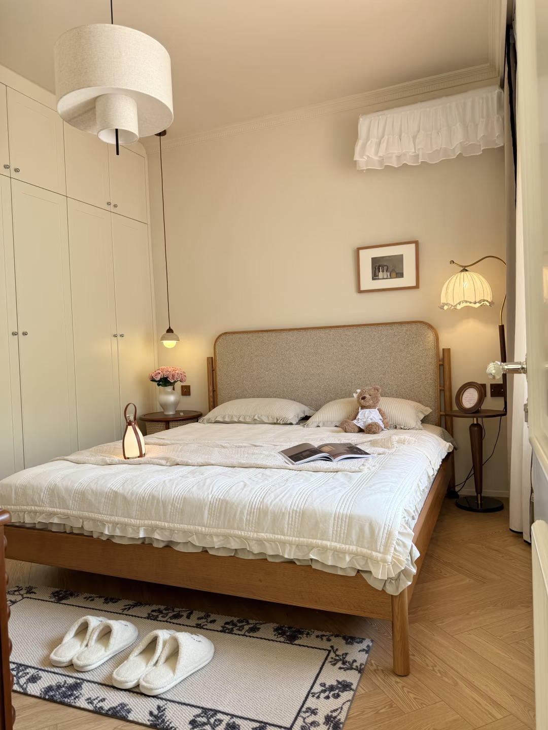 家是我的能量场 下班回家第一眼 实木床 卧室一镜到底 小户型装修 小户型显大 温馨的卧室 治愈系房间 暖色系卧室