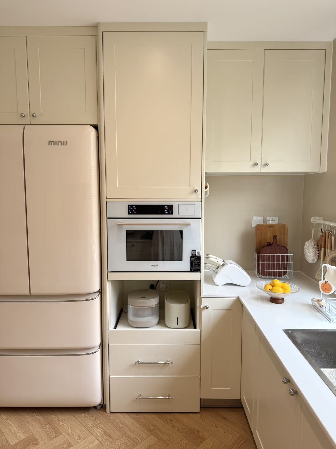 入住一年了,近期最满意的折腾就是改造厨房!现在厨房的家电全选了嵌入式,一点不占台面空间,看起来整整齐齐的,特别舒服~