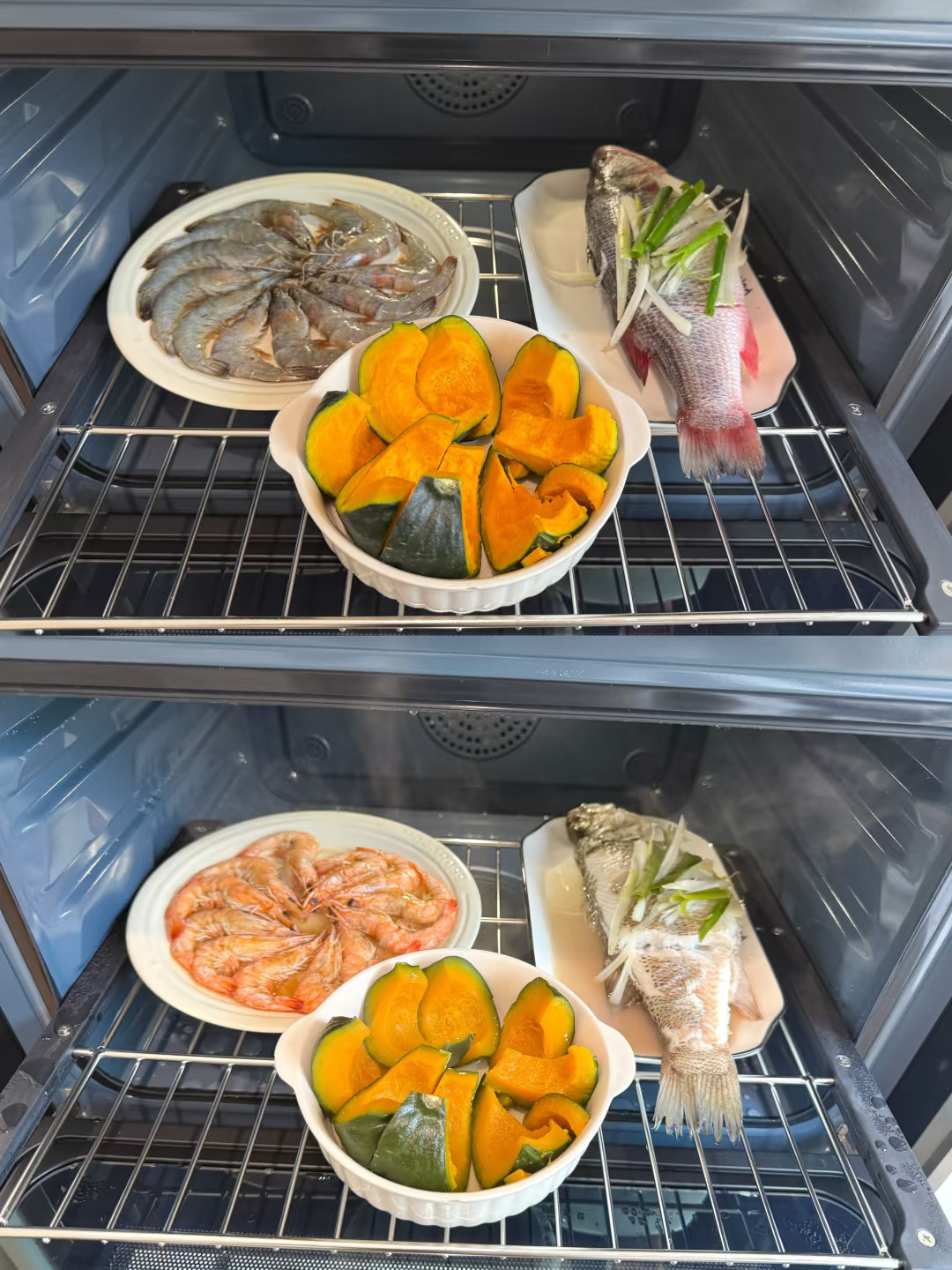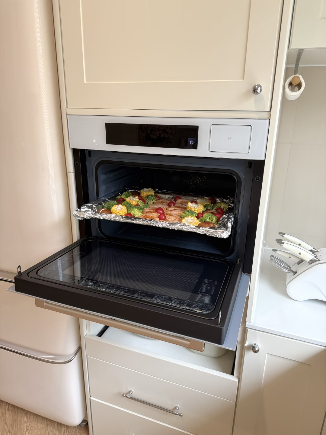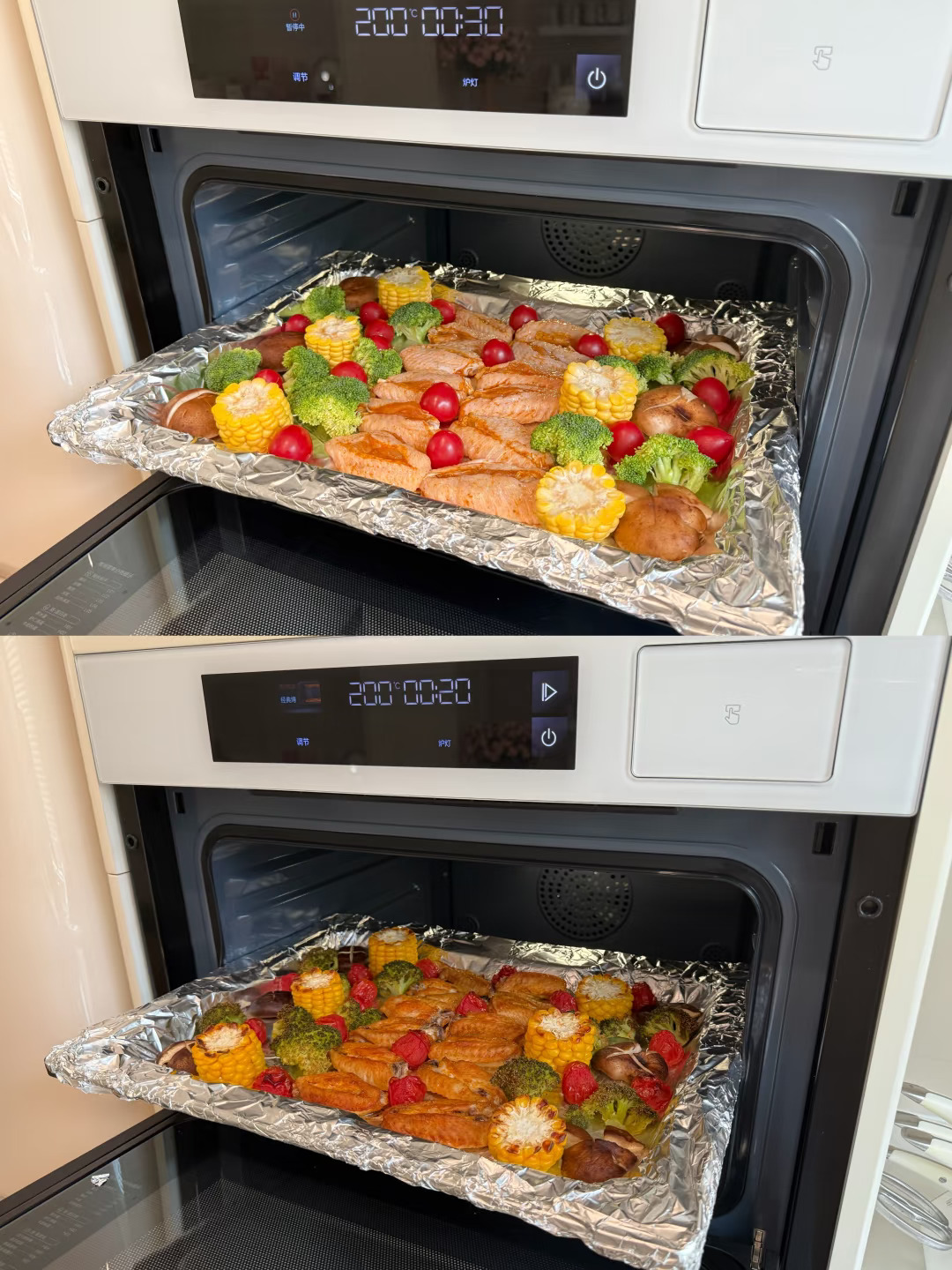 还有我心心念念的华帝小微光V5蒸烤一体机也安排上了,55L大容量超实用,一台能当蒸箱、烤箱、微波炉、空气炸锅用,对我这种厨房小白太友好了!家里来客人也不怕,半小时就能搞定一桌菜,微蒸、微烤功能大大提高了做饭效率~
