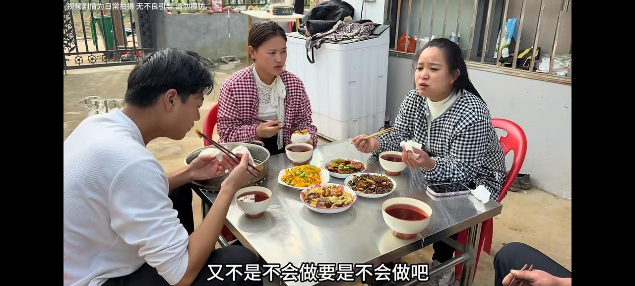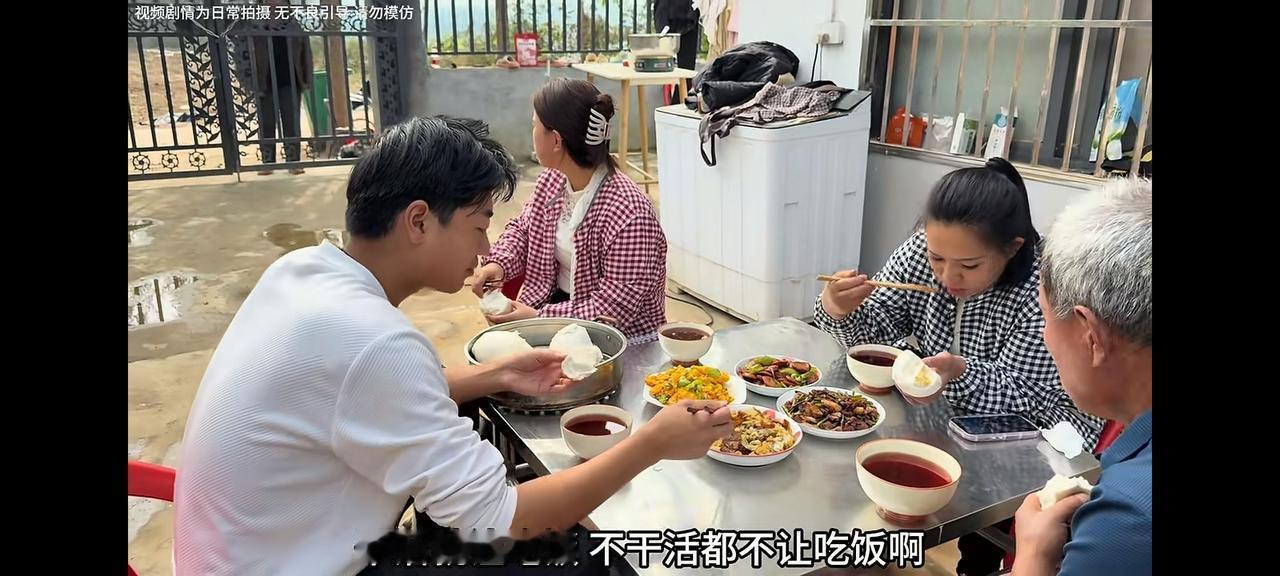 这一家人吃饭,真香啊 老壳子看到老伴、儿媳妇、闺女、姑爷都在吃饭,唯独把她锁在了外边,这是儿媳妇的家。 本来应该是在老壳子家,由老壳子做几个菜和饭,招待大家和和睦睦的在一起吃饭,但是,在她们家,是永远看不到这种画面的。 李佳不止一次的,把她锁在门外,就是看不惯她的所作所为,儿媳妇再忙她也不管,雨露结婚她都不管,只顾自己来牌行乐,而且能偷且偷,能拿且拿,处处为难孩子们。 当闺女隔着门给递给她一个馒头时,她说打发要饭的,头也不回的说:“吃炒鸡去”。 这阿杜不在家,可没人再惯着她了。