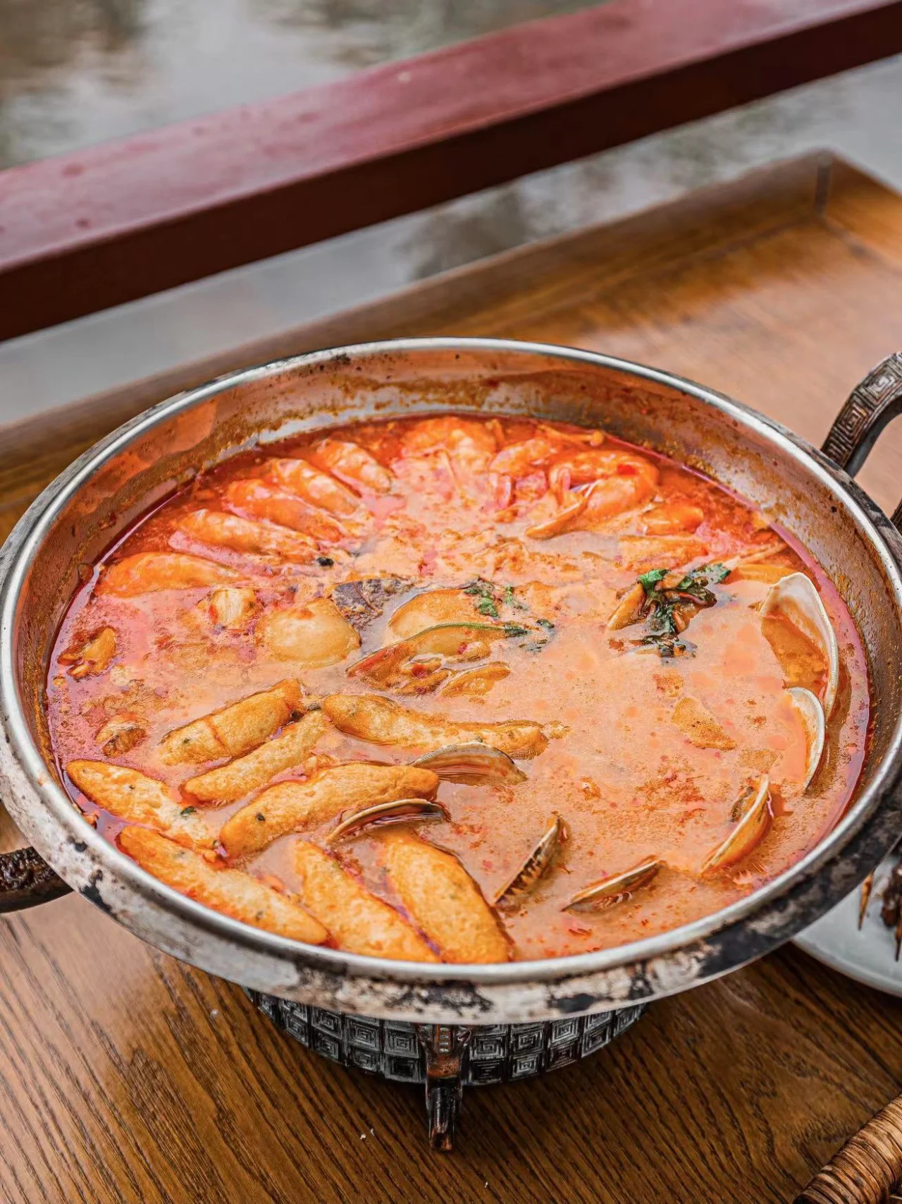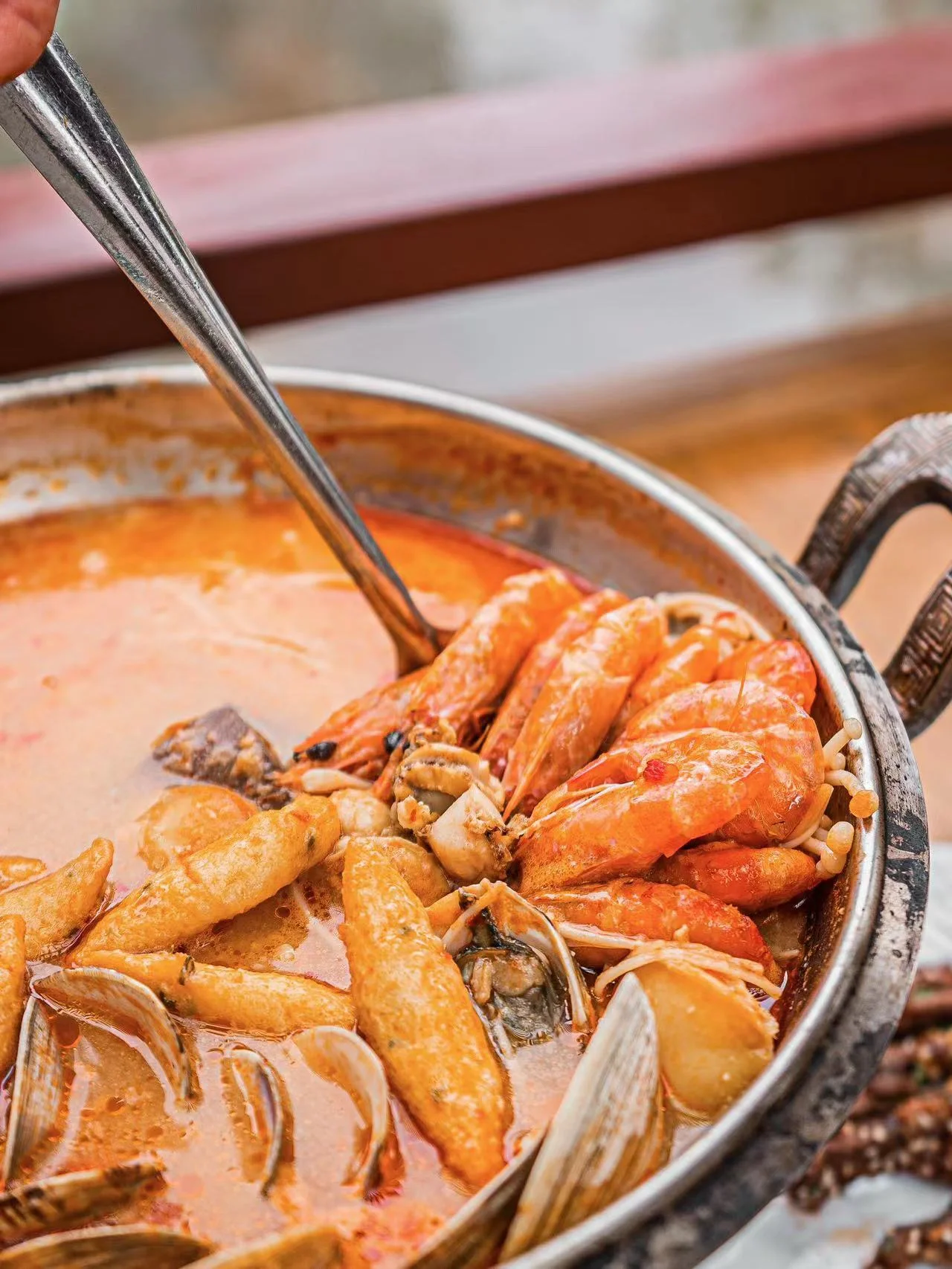 酸酸的特别开胃,也是海南很经典的特色美食,里面有好多海鲜,小鲍鱼、大虾、扇贝、花蛤…先喝汤再吃海鲜,特别鲜美哒~