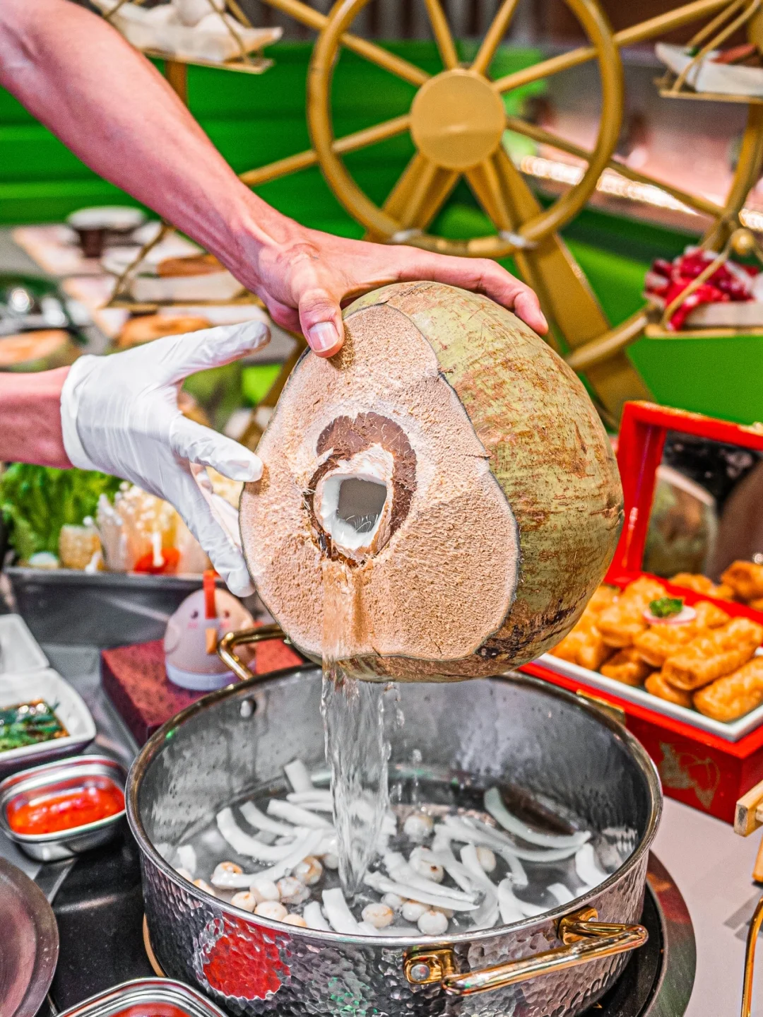 放了整整三只椰子,椰子鲜美干爽,非常浓郁,🐔选用的是散养158天的走地文昌🐔,两者碰撞在一起,🐔肉带着满满的椰香味,再来上一口原汁原味的汤底,简直绝了