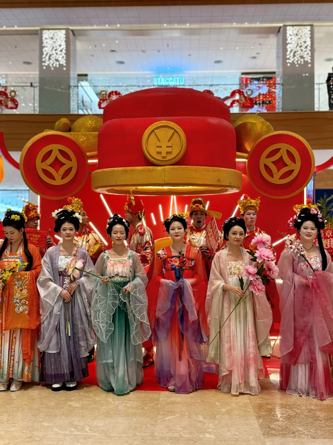 十二位花神汉服打扮,和节日氛围也太搭了,没得让人忍不住想要打招呼,还可以与花神妹妹们合影哦。