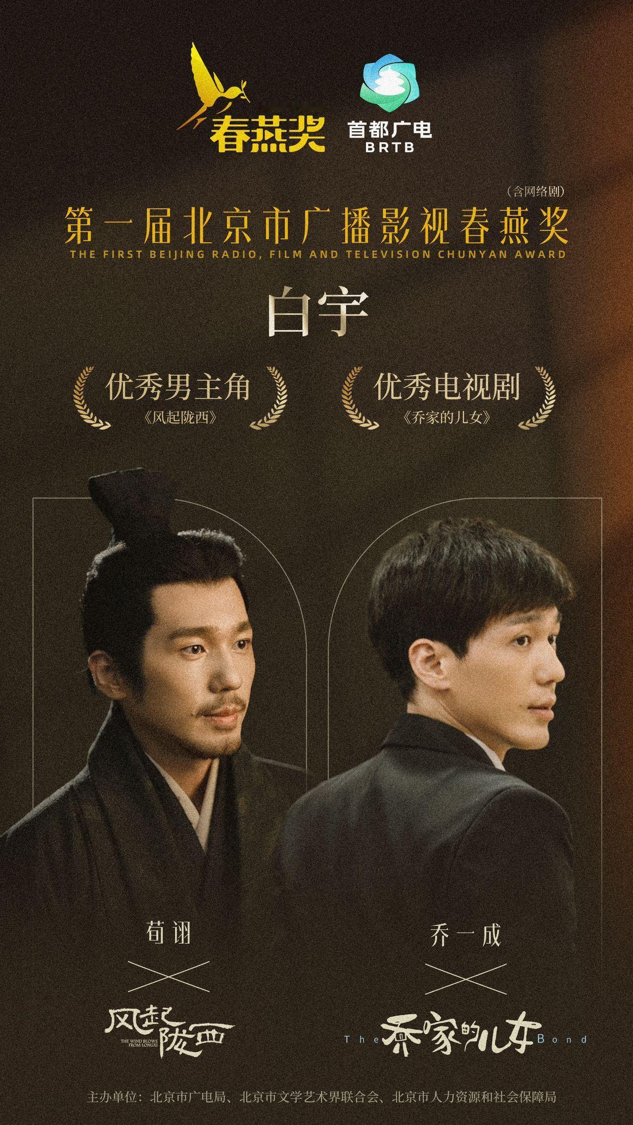 谁懂啊!第一届北京广播影视春燕奖白宇直接双奖!《风起陇西》荀诩拿下剧集类优秀男主,领衔主演的《乔家的儿女》还喜提优秀电视剧,这含金量绝了~从家国大义为先的谋士荀诩到撑起全家的乔一成,每个角色都演到心坎里,演技稳到发光!