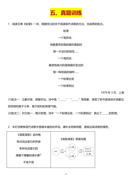 📚 10道现代诗歌高频真题和答案 老师精选了近 3 年各地月考、期中和期末考的10道现代诗歌高频真题,覆盖现代诗歌的各个考点,练好这10道,考试遇到现代诗歌就不会慌!