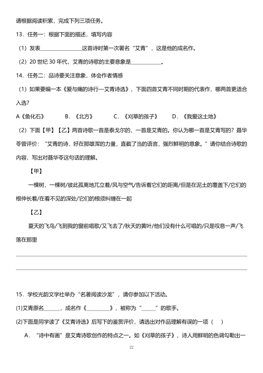 四、《艾青诗选》名著阅读