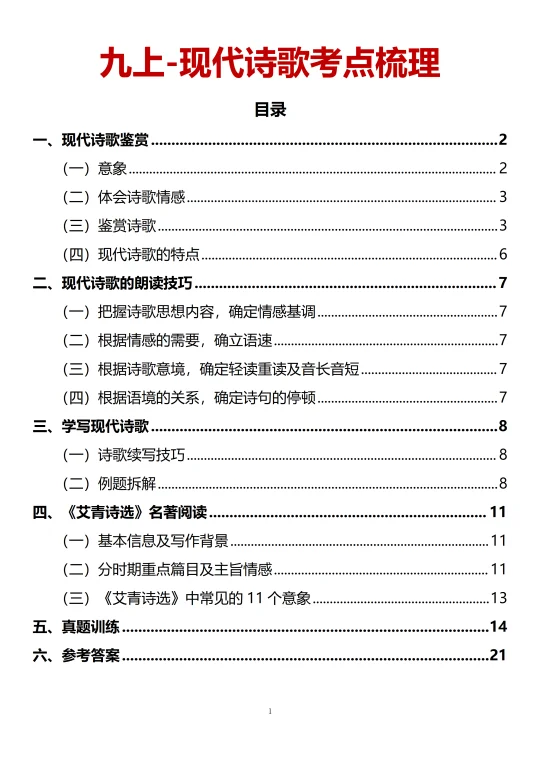 [火R]翻开与课本,就知道现代诗歌是九上学习以及考试的重点。相信不少同学已经学习了第一单元的现代诗歌,但你真得读懂了吗,考试做题又是否真得会答呢?