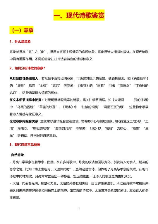 一、现代诗歌鉴赏