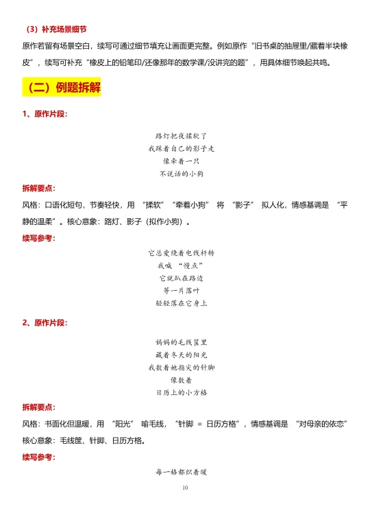 现代诗歌比较少考察作文,其写作的考察方式主要是仿写。我们需要拆解前文风格及结构,然后确定续写内容及情感