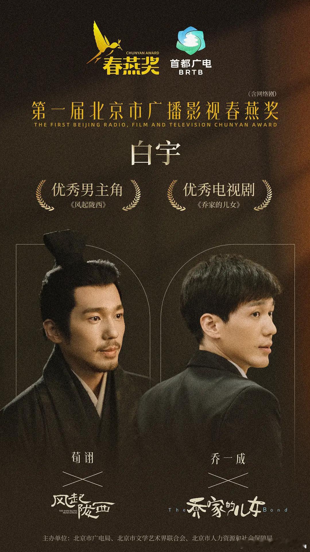 恭喜白宇凭借《风起陇西》荀诩一角获得重生后的第一届“春燕奖”优秀男演员,也是历届春燕第一且唯一90生视帝✌🏻