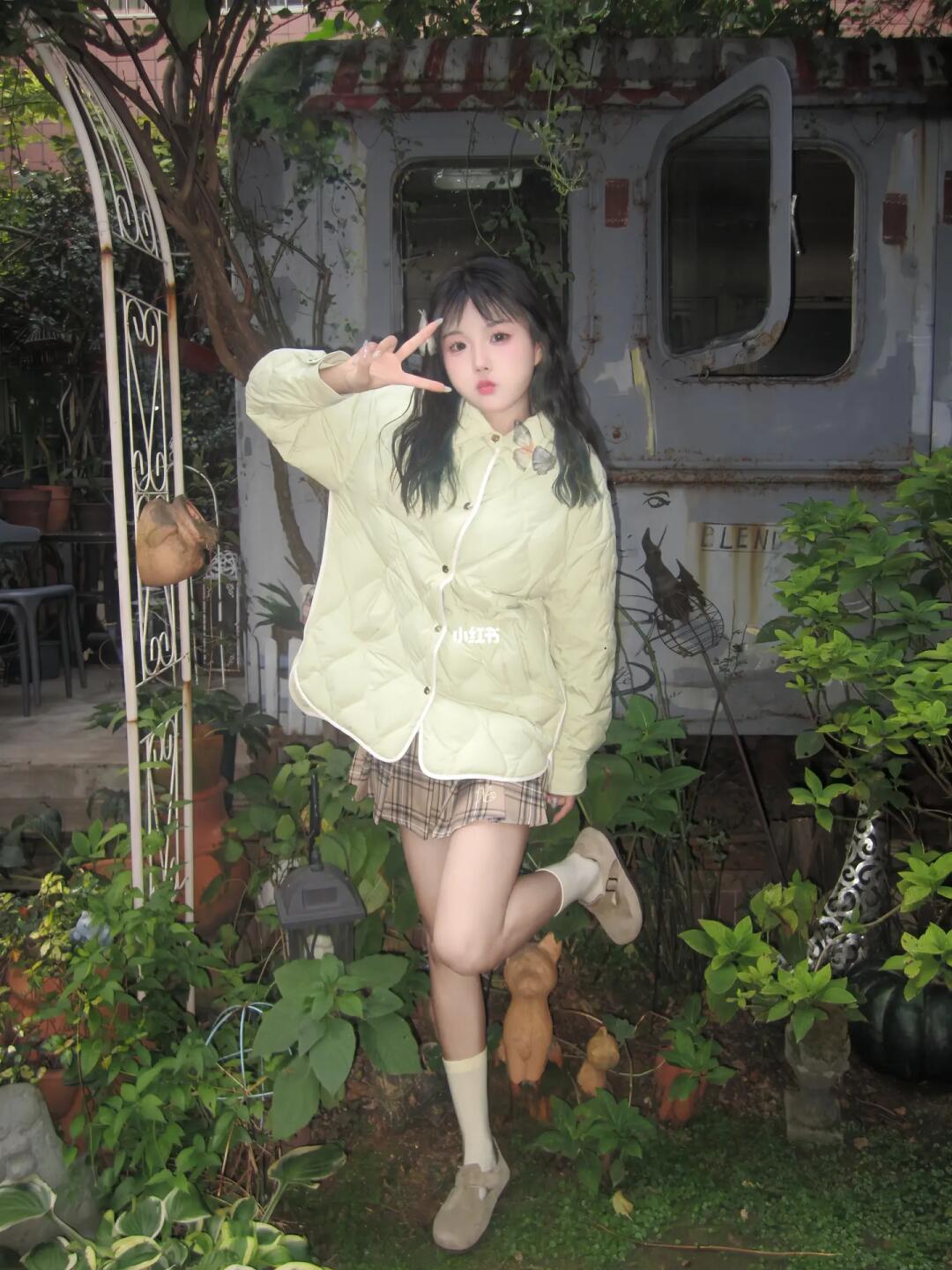 秋天拍套绿野仙踪感的照片叭 很喜欢这种大自然的感觉 便宜的小蝴蝶当道具也太好看咯 今天的外套也是淡绿色 奶乎乎的减龄效果max!! 尊嘟很爱十月