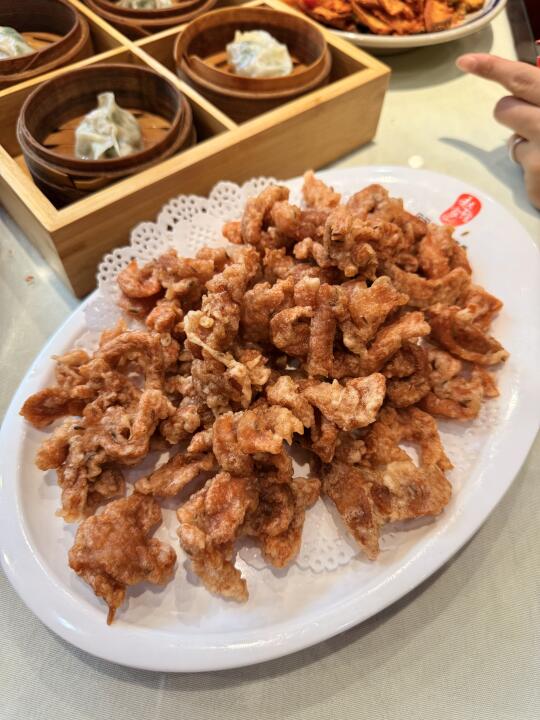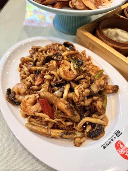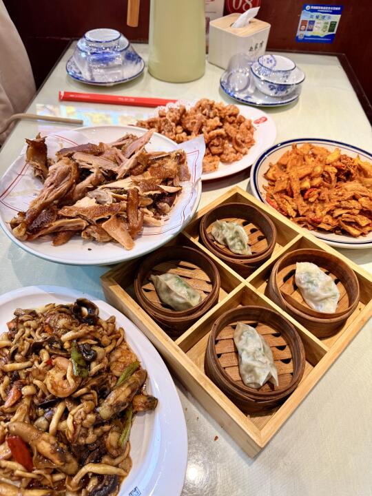 小时候和家里出去吃饭基本就来赵家馆 真的算是贯穿我整个学生时代 吃了这么多年,算是老字号中平价又好吃的! - ✔️特色炸肉 老招牌菜,外酥里嫩 ✔️赵家馆自制熏鸡 浓郁的烟熏口味,皮爽口肉也不干柴 ✔️香酥风沙杏鲍菇 算是新菜,杏鲍菇外皮炸的焦脆 内里还保留蘑菇的多汁,微辣口味 ✔️双菇爆三鲜 新菜!收获小伙伴们一致好评!海鲜➕蘑菇搭配 最快光盘的一道‼️ ✔️鲍鱼馅蒸饺 一整颗鲍鱼!吃起来很鲜!必点!! - 另外阿姨们态度都超好! 也会贴心讲解菜品口味 这才是老字号里该有的态度和口味啊!!