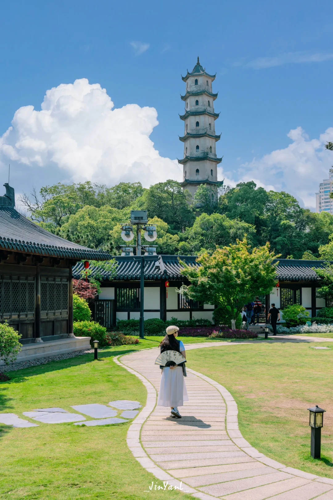 ❶江心屿:瓯江上的“诗之岛”,东西双塔对峙,谢灵运笔下的“孤屿媚中川”化作东塔顶百年榕树与西塔佛龛的千年守望。