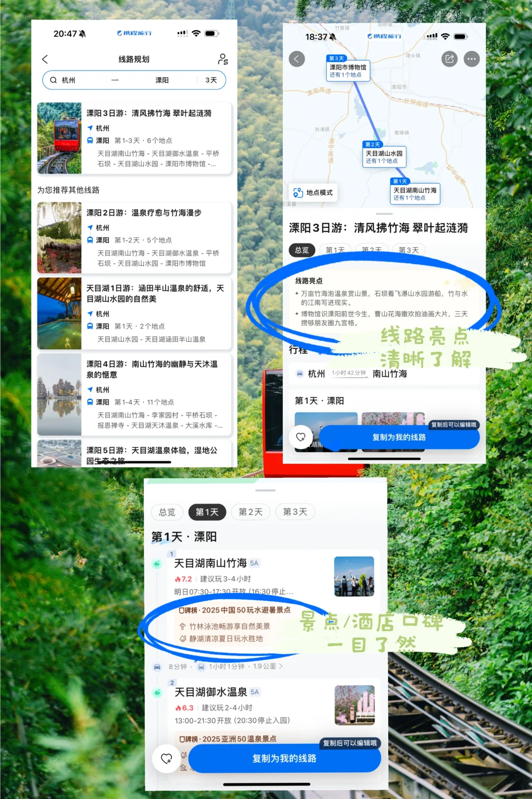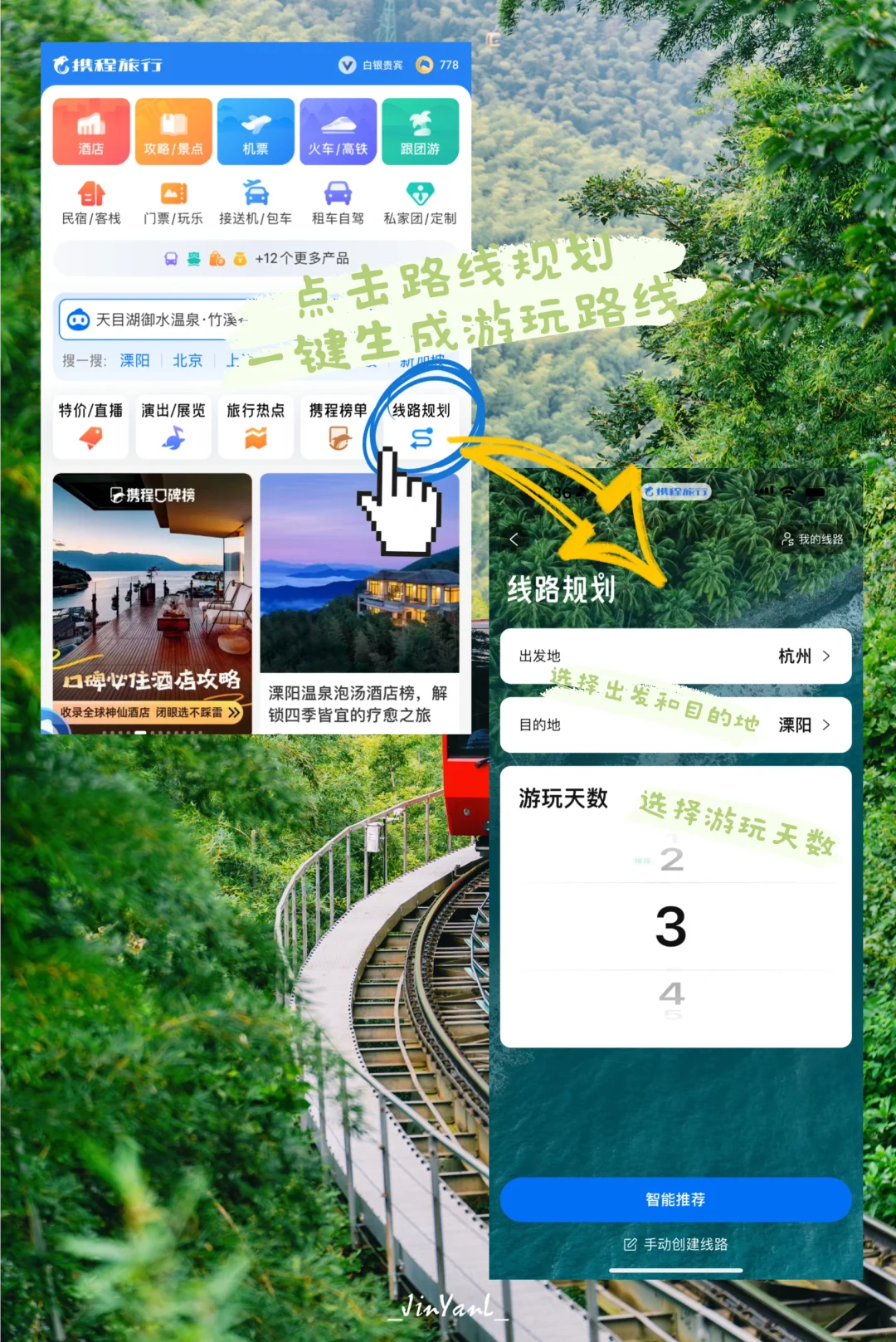 🔹一键生成游玩路线,P人福音:打开携程APP,点击“路线规划”,选择出发地和目的地,输入旅行天数,点击智能推荐(路线生成后也可自己手动修改行程),一条完美的旅行攻略就OK了,而且推荐线路中包含了大部分口碑榜上必打卡的当地景点,不绕路,非常高效,特别是第一次去某个目的地没有概念的时候,这个路线功能能帮你一网打尽所有值得去的景点。