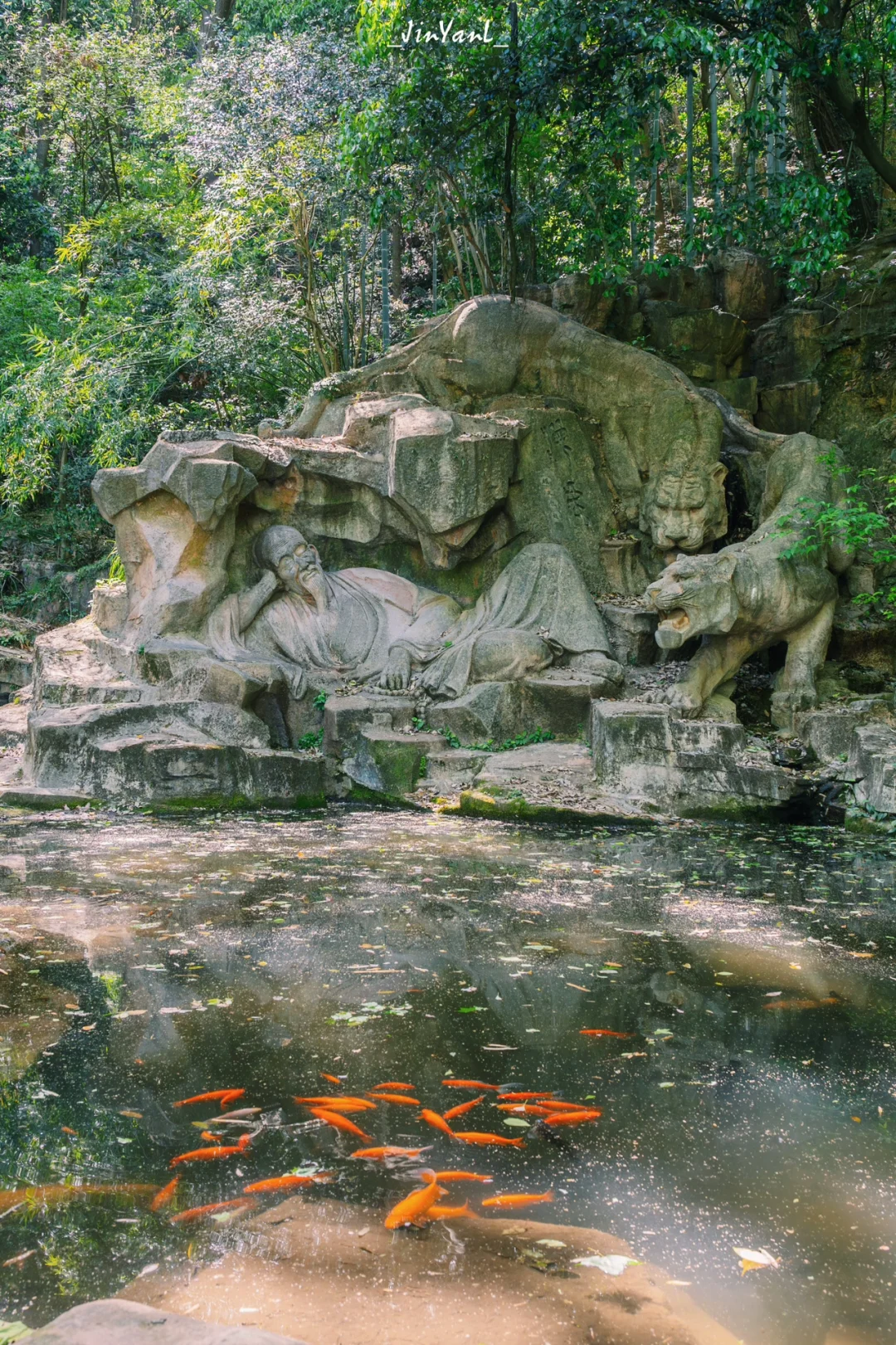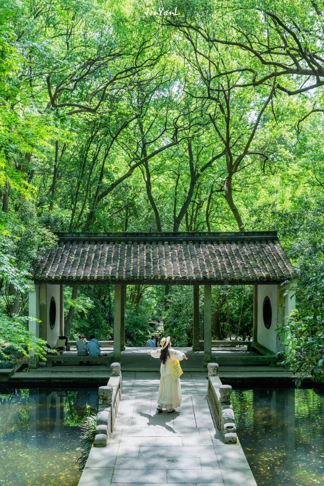 🔹出片位置:✔️入口到含晖亭一段的水杉林和溪流相映;✔️撷翠轩的框架背景;✔️集雅轩两侧的白墙和光影;✔️玉带池;✔️梦虎雕塑