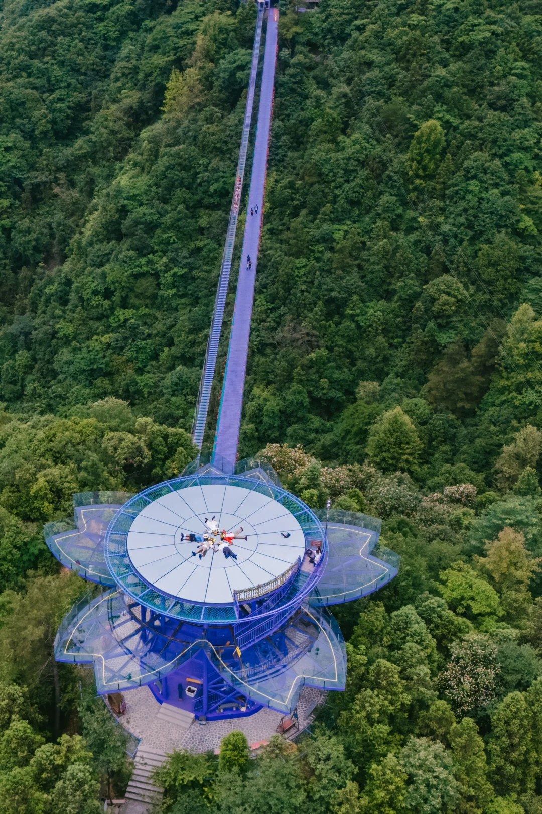 年度神仙机位TOP1‼️双层玻璃平台倒映天空,穿亮色裙子躺拍,分分钟get“悬浮天空”大片!紫金花造型眺台像巨型水晶莲,俯拍峡谷全景,高级感溢出屏幕~(建议上午or傍晚光线柔和时拍)