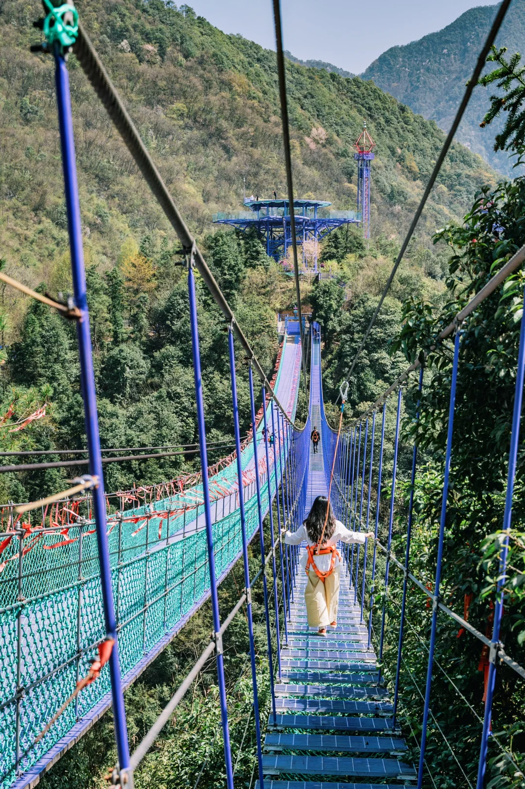 300米高空玻璃栈道,脚下是万丈深渊,刺激到腿软😱(安全绳超稳!)。怕高就走旁边的云梯天桥,随手一拍都是“云端漫步”既视感