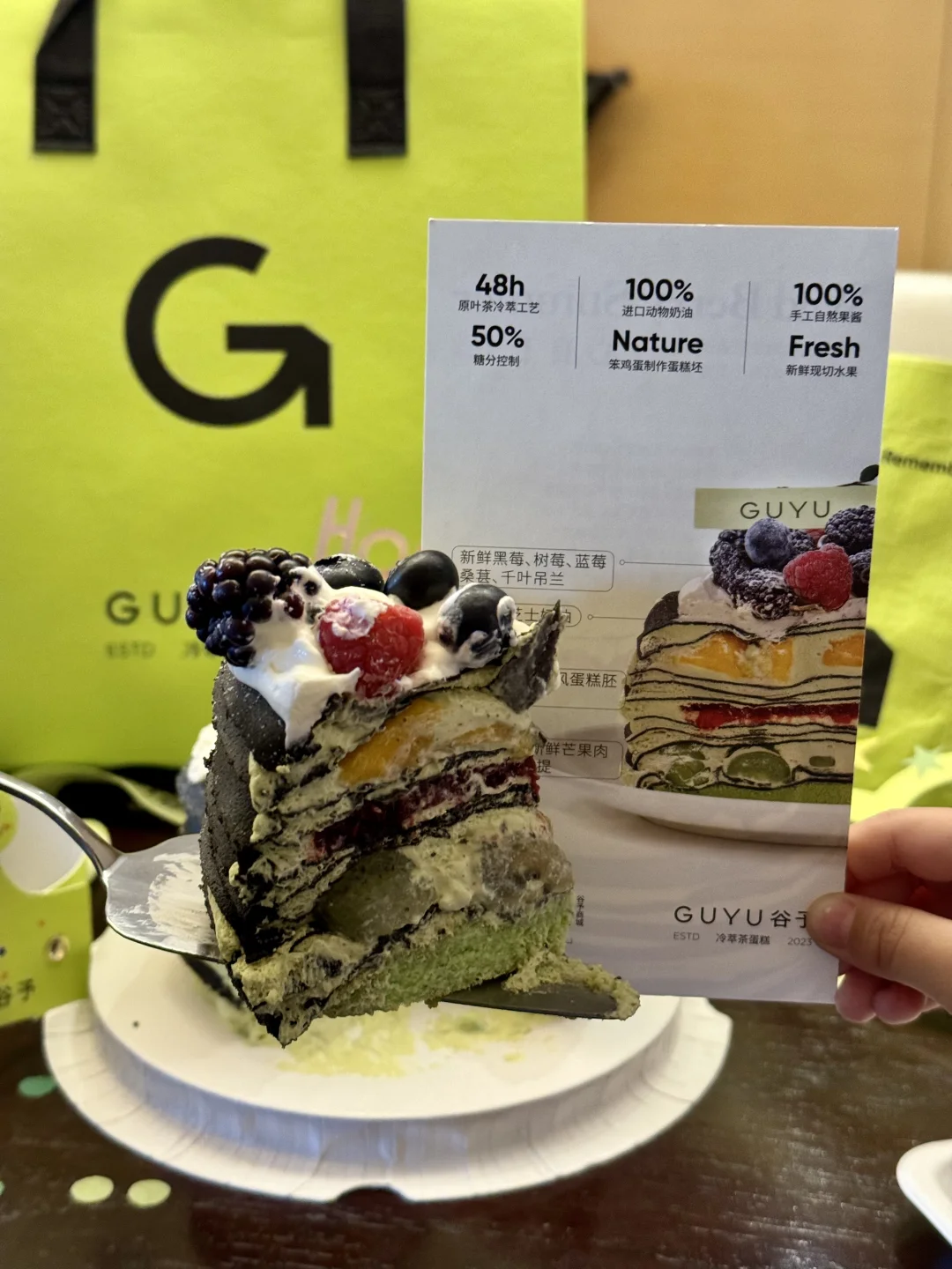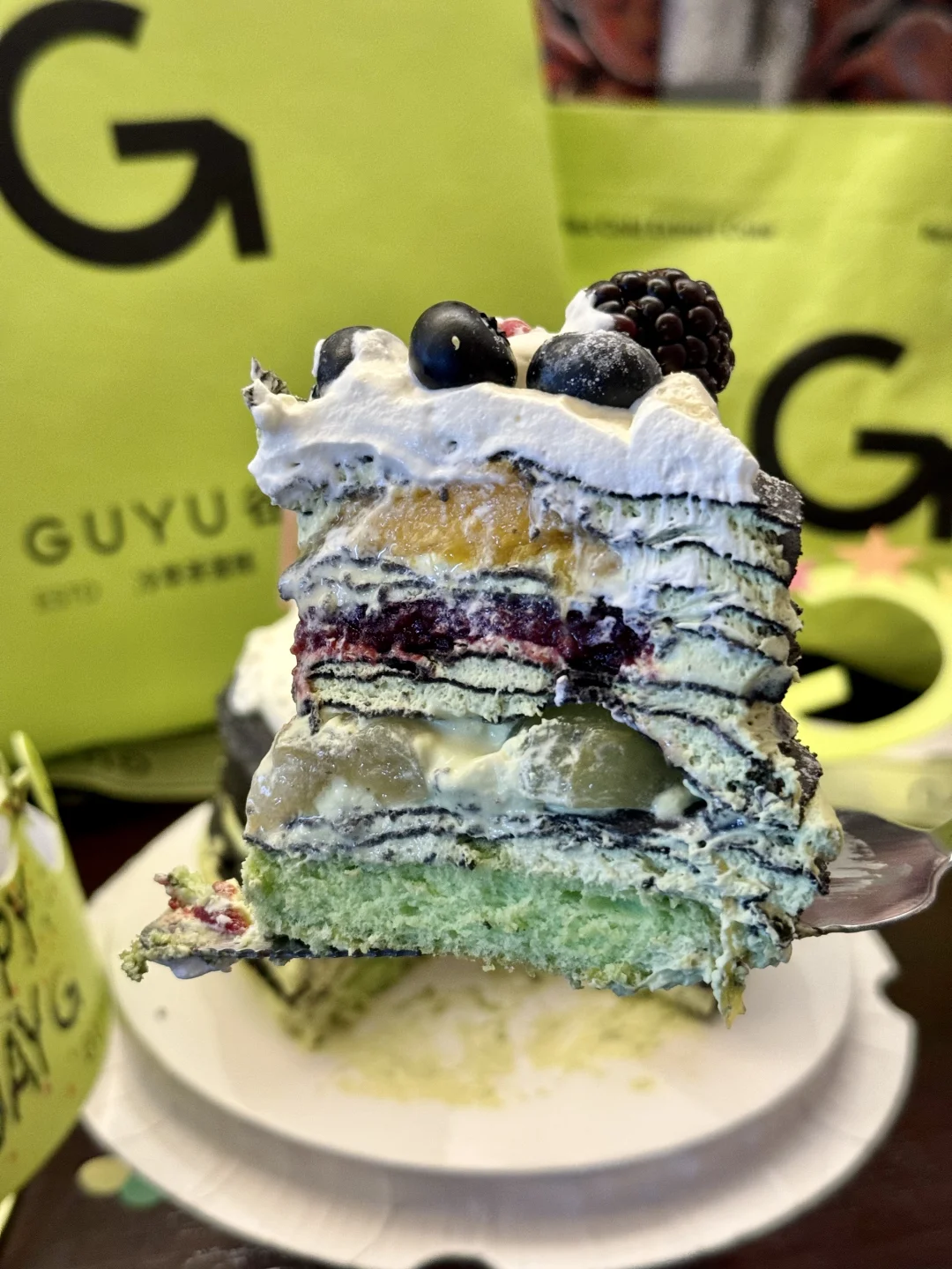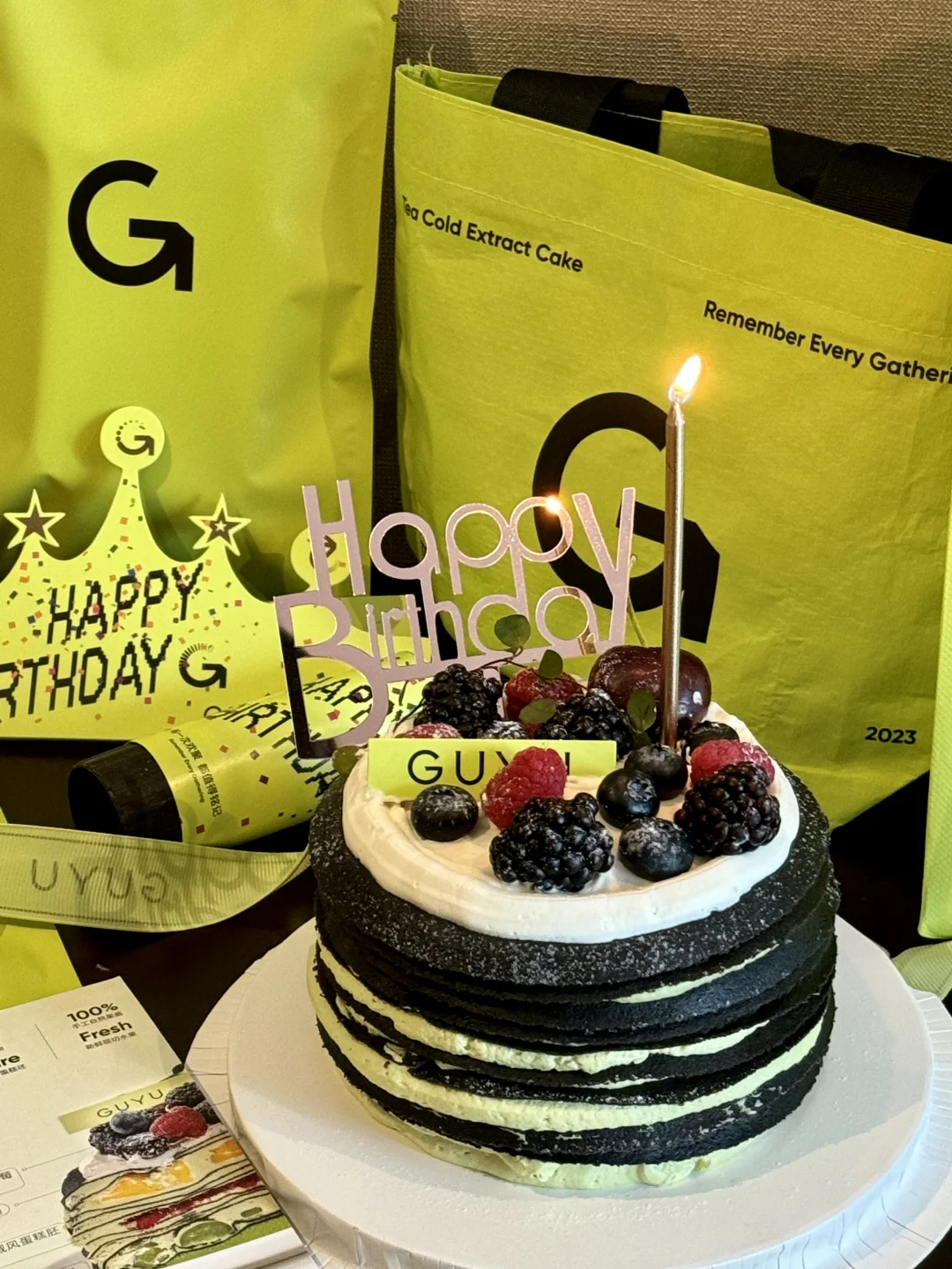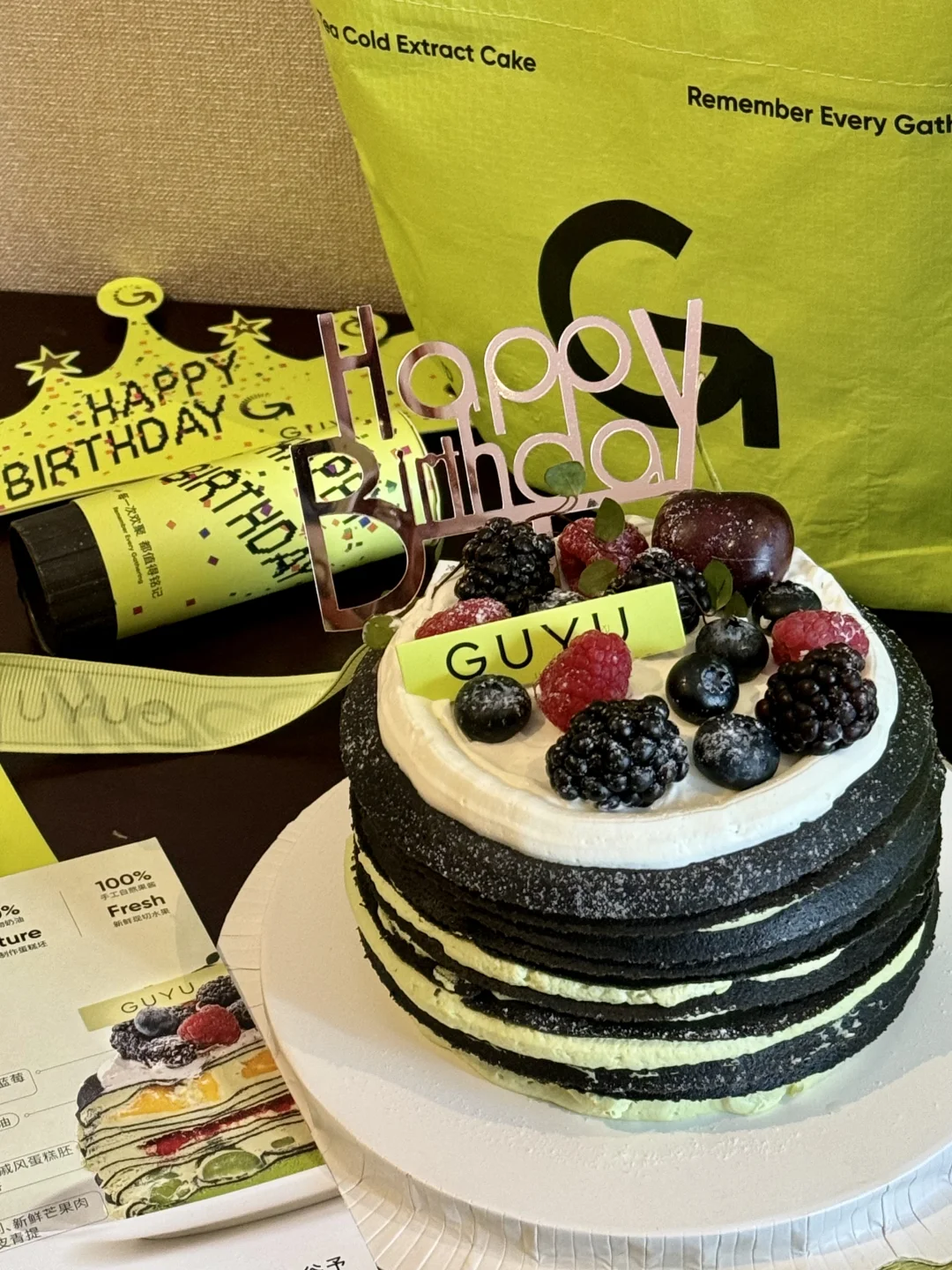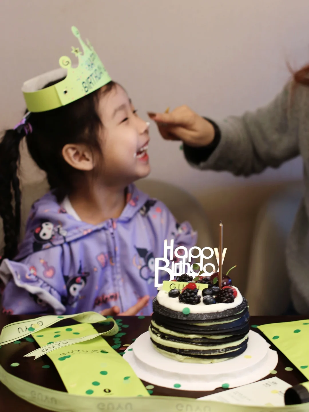 🍑姐生日,给她定了低糖的蛋糕, 没想到这个🍰竟然这么好吃😋 蛋糕胚不仅是斑斓戚风蛋糕, 还有竹炭可丽饼,口感很丰富🌈 用的还是开心果芝士奶油, 香浓细腻,一整个爱住了~ 夹心是新鲜水果,每一层是不同果肉🤩 甜而不腻,还有生日帽,眼镜,撒花筒, 好看好吃好玩,简直是少女心收割机😍