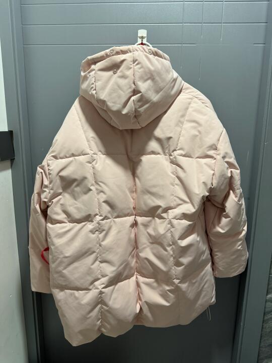 这件商家说是 70 绒的,想想如果说不是绒的款式好看的话那也可以留一下,反正价格也不贵,但是到时候发现他款式也不好看,里面填充的也不是羽绒唯一唯一的优点就是颜色比较好看,很干净的粉色