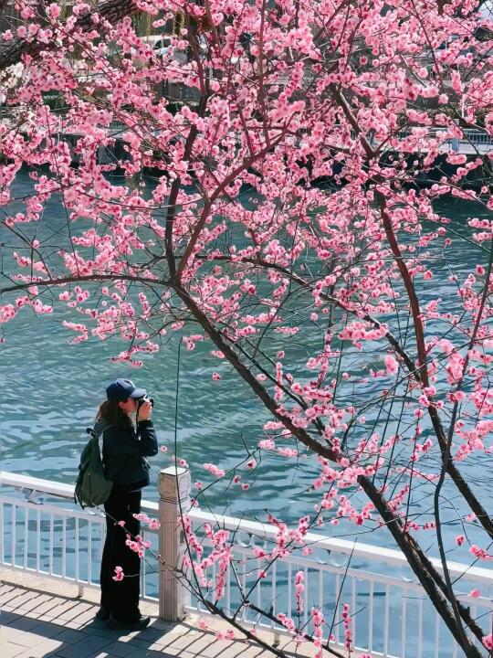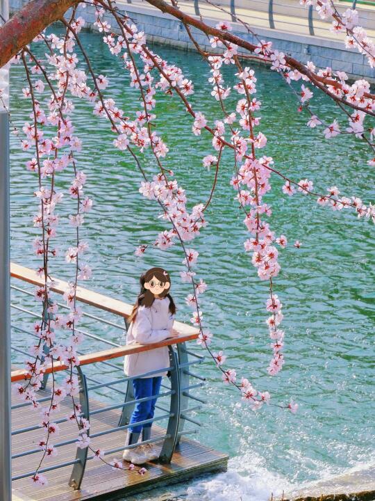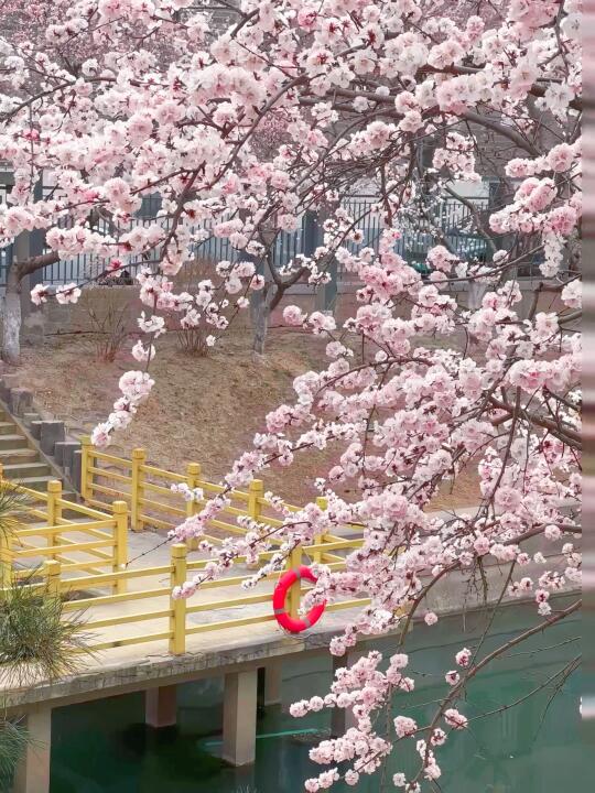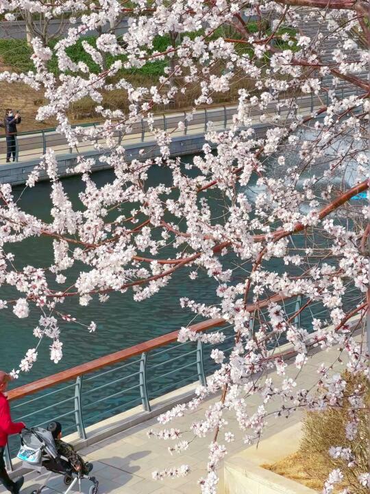 📸赏花有平台,可以在平台的一角拍照,摄影师朋友在桥上向
