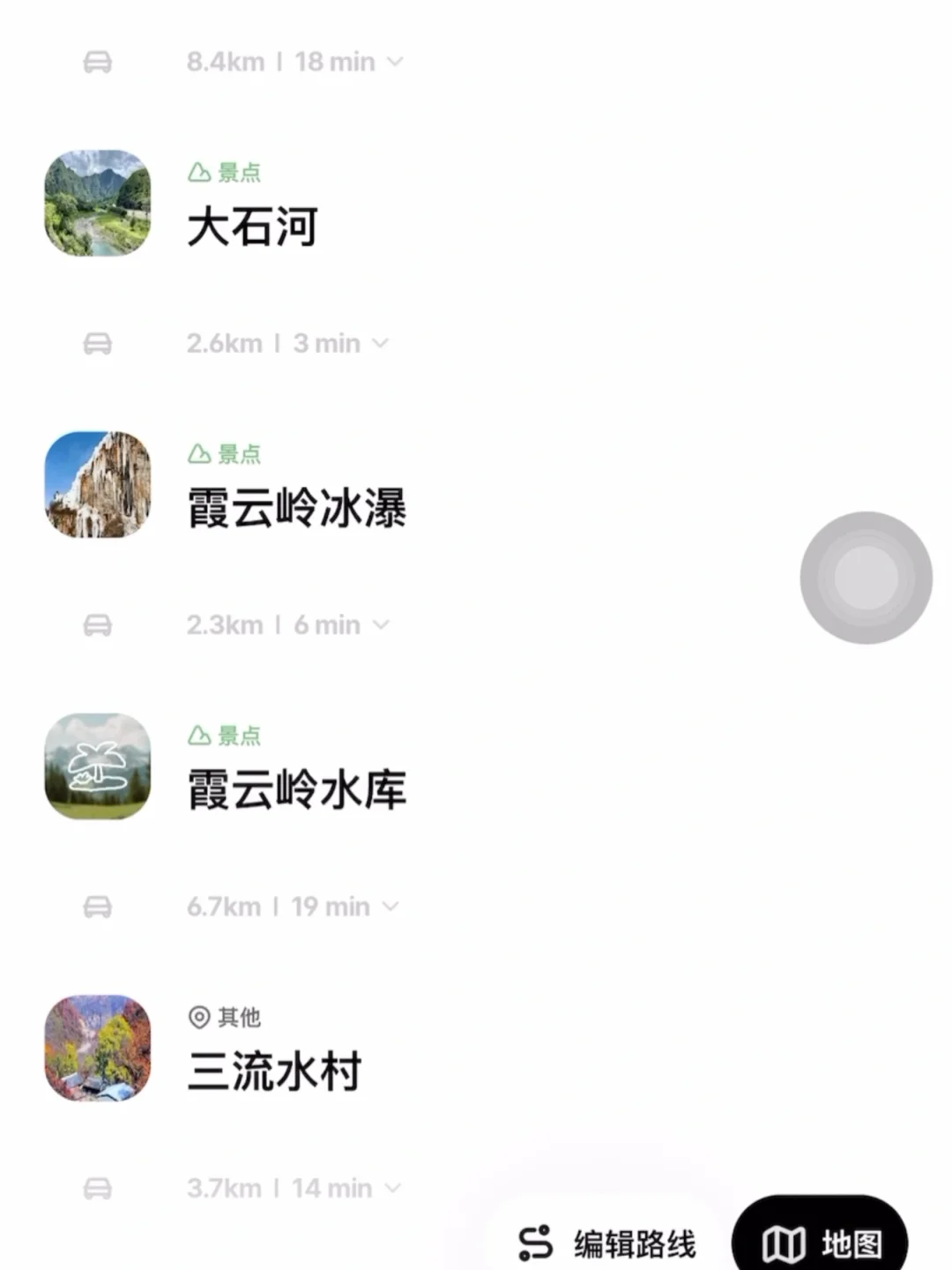 大滩梨花小栈👉大石河👉霞云岭冰瀑(没化可以看看)👉霞云岭水库👉三流水村