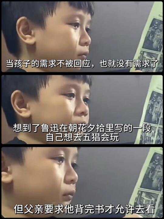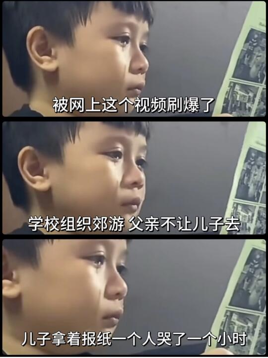 最近有一个让人心碎的片段:“一个小男孩,因为爸爸不允许他参加学校的郊游,静静地哭了一个小时。他没有大声抗议,只是默默地流泪。最后,爸爸心软了,同意他去。但那一刻,孩子的快乐已经被泪水冲淡,去与不去,似乎已无分别。”