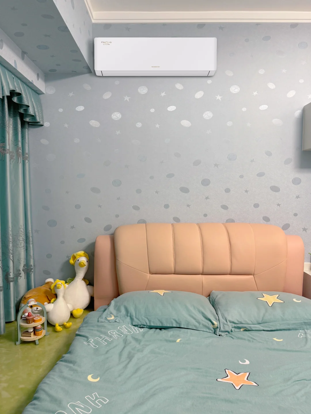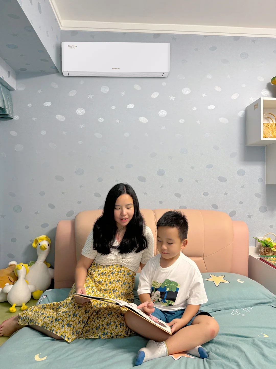 晚上睡觉时更省心😴格力新品1.5匹云佳Pro空调能自动调光线和声音。yeye怕黑要开夜灯💡空调屏幕就自动变暗;半夜他踢被子,我在被窝里用手机悄悄调高温度,不用摸黑找遥控器。最厉害的是外机居然也会自己冲澡🛀窗外落的灰尘都被冲得干干净净,省了请师傅上门清洗的麻烦。