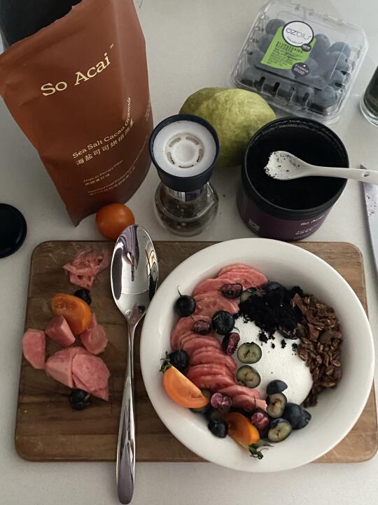 格外喜欢soacai巴⻄莓粉 花⻘素含量很⾼ 还有omega9、VE、膳食纤维等等 一勺全补~妥妥初老饮食六边形战士~