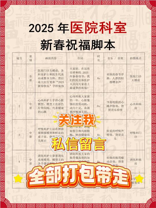 护士新春科室视频站位+祝福语+脚本!