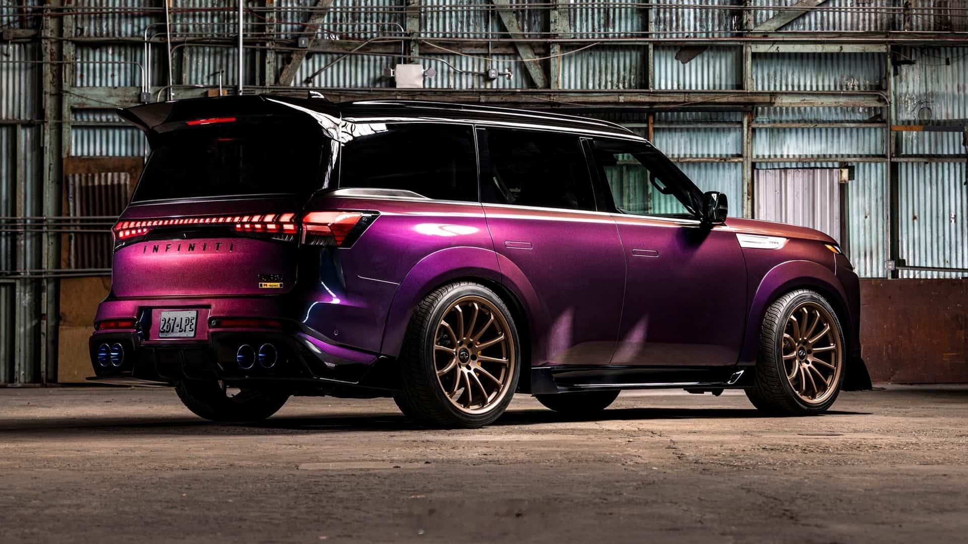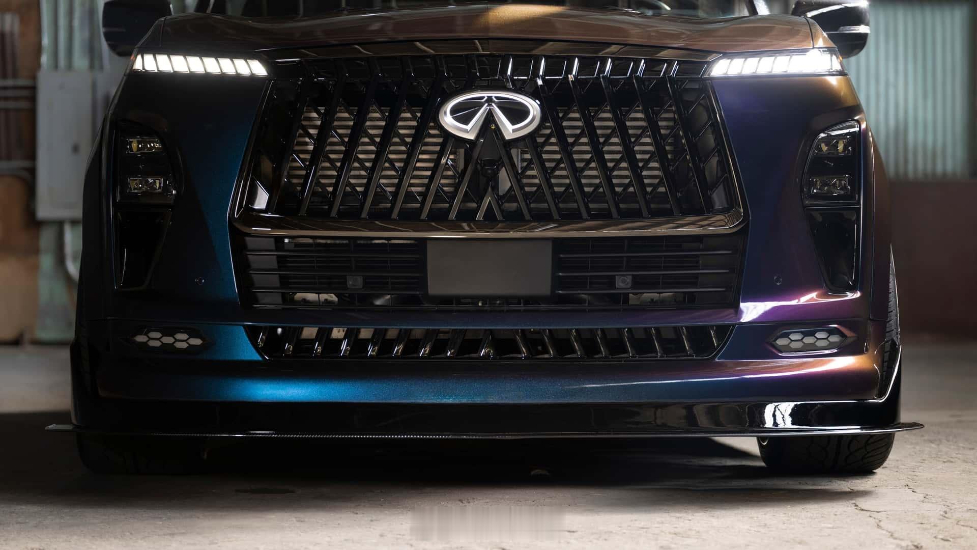 给英菲尼迪QX80塞进了一台GTR的发动机:VR38DETT,VR: 代表V型、高性能(Racing);38:代表发动机排量为3.8升;D:代表双顶置凸轮轴(DOHC);E: 代表电子燃油喷射;TT: 代表双涡轮增压(Twin Turbo)