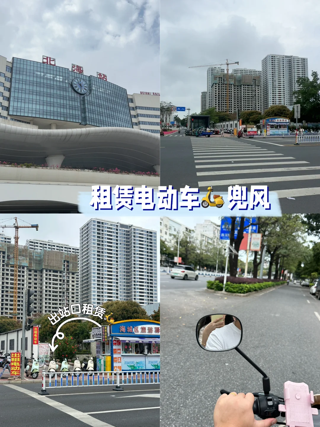 北海站出站口经过站前广场后一直往大马路方向,看到一个报亭,那里就是可以租赁电动车的,超方便的!